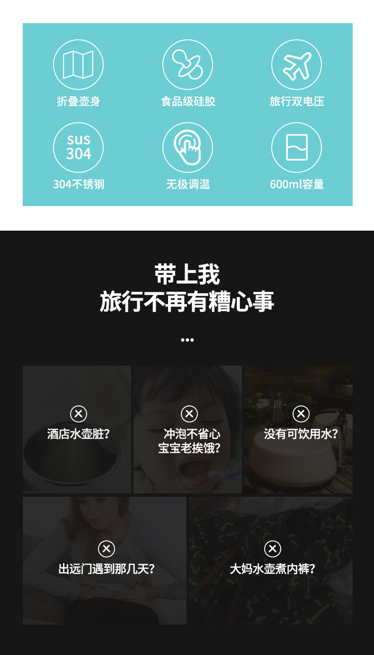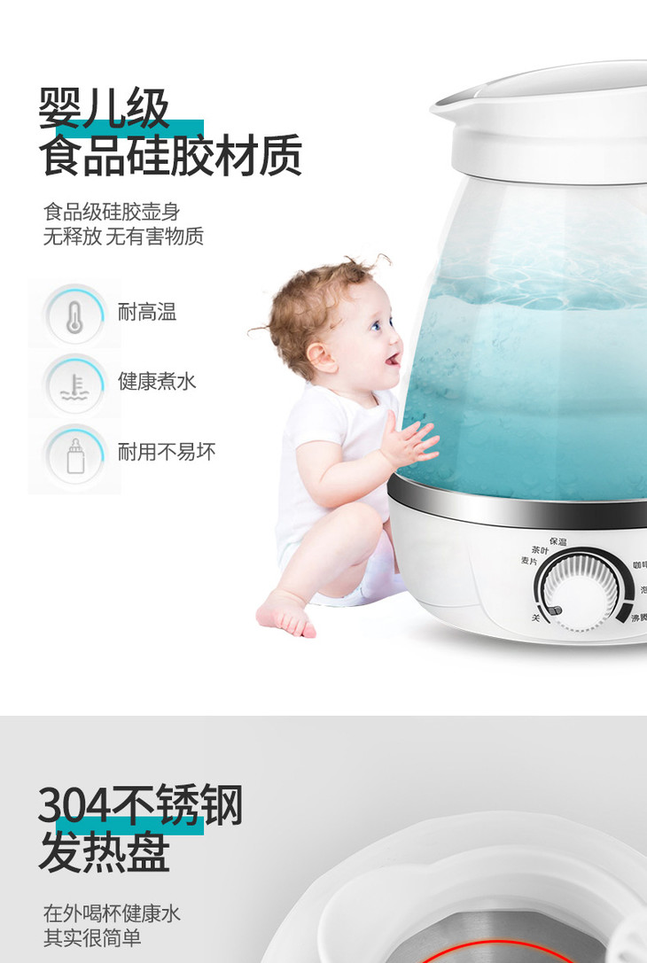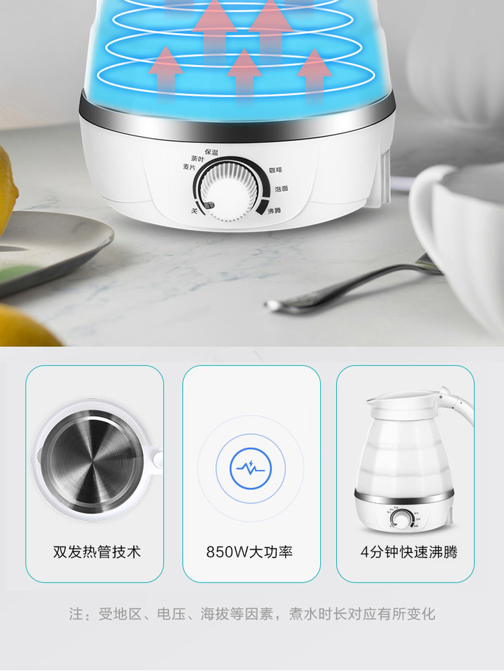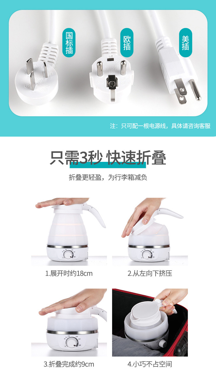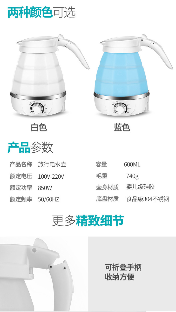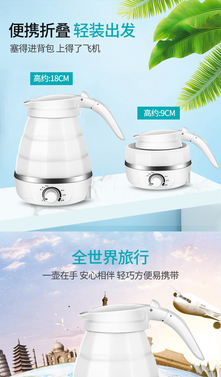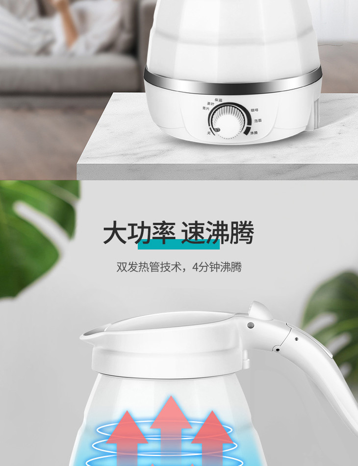 【家用电器】可伸缩折叠硅胶电热水壶 旅游便携式折叠水壶迷你烧水壶家用旅行