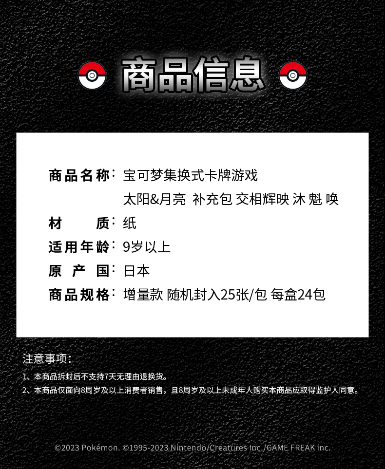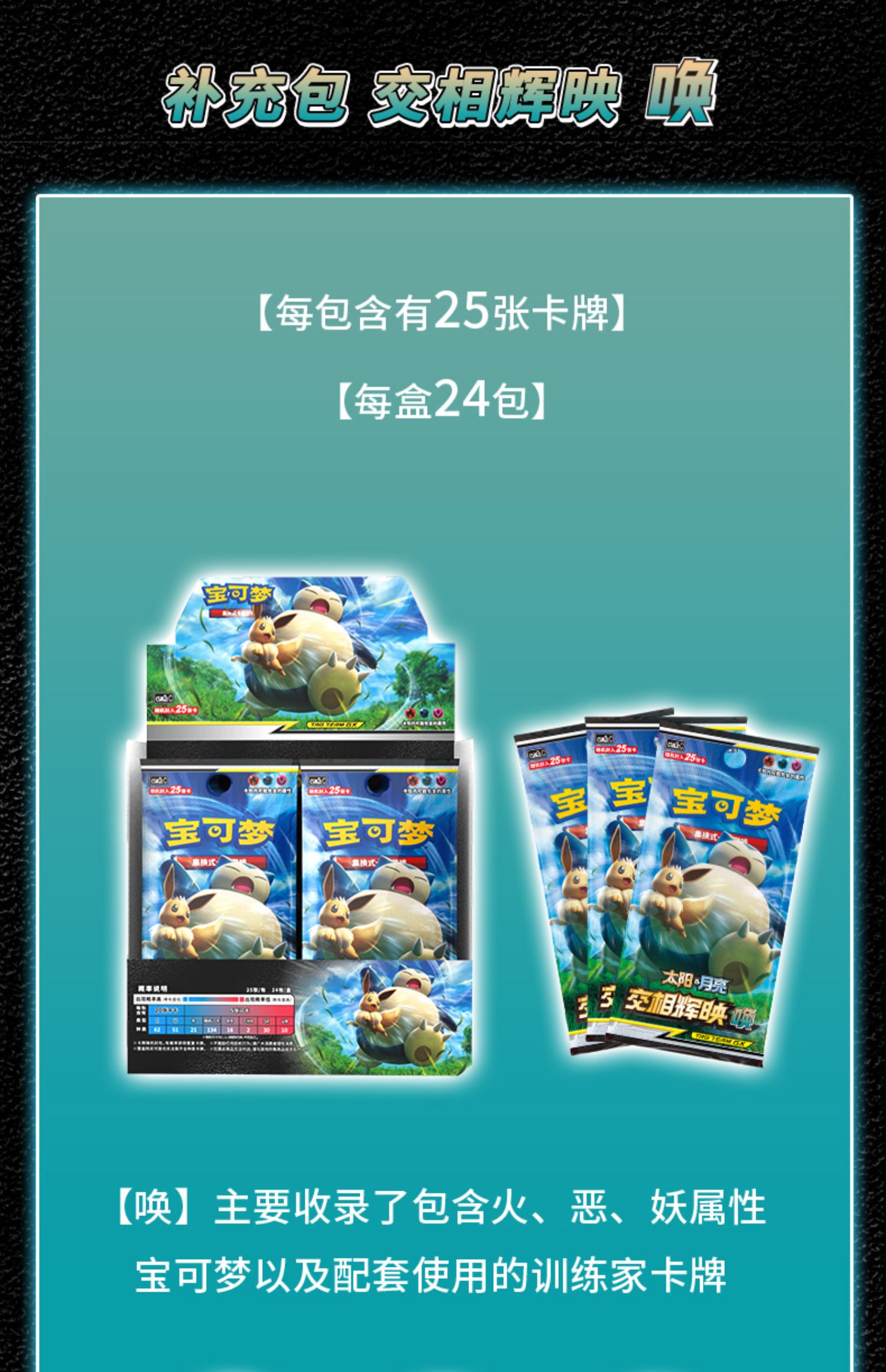 【增量款】宝可梦 集换式卡牌 增量款补充包 25张装 PTCG 简中日月第2弹 交相辉映 24包/盒