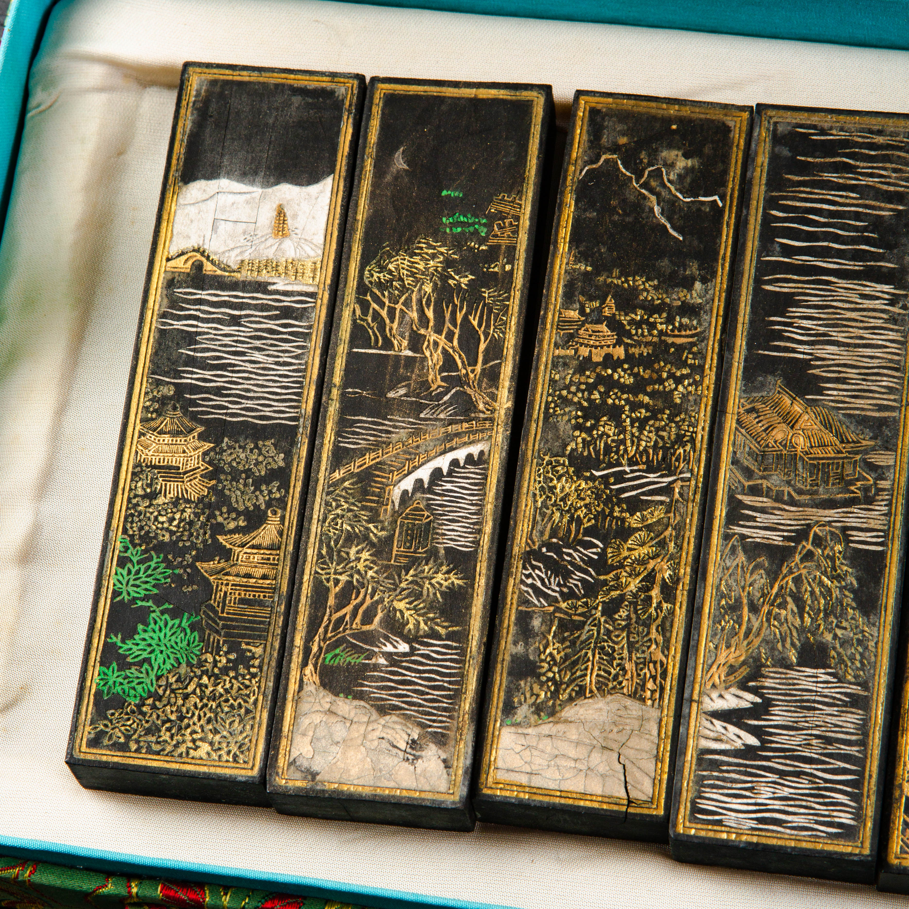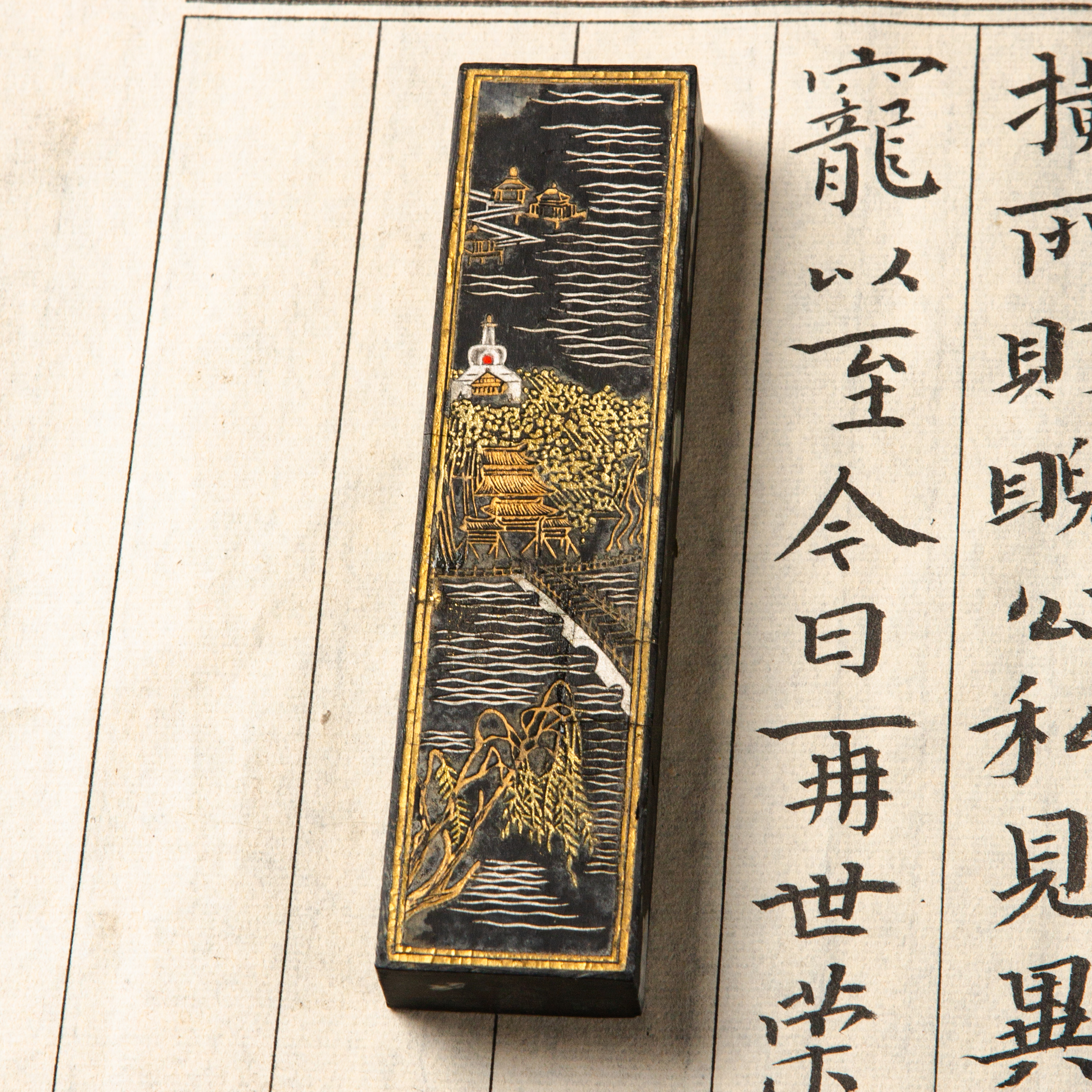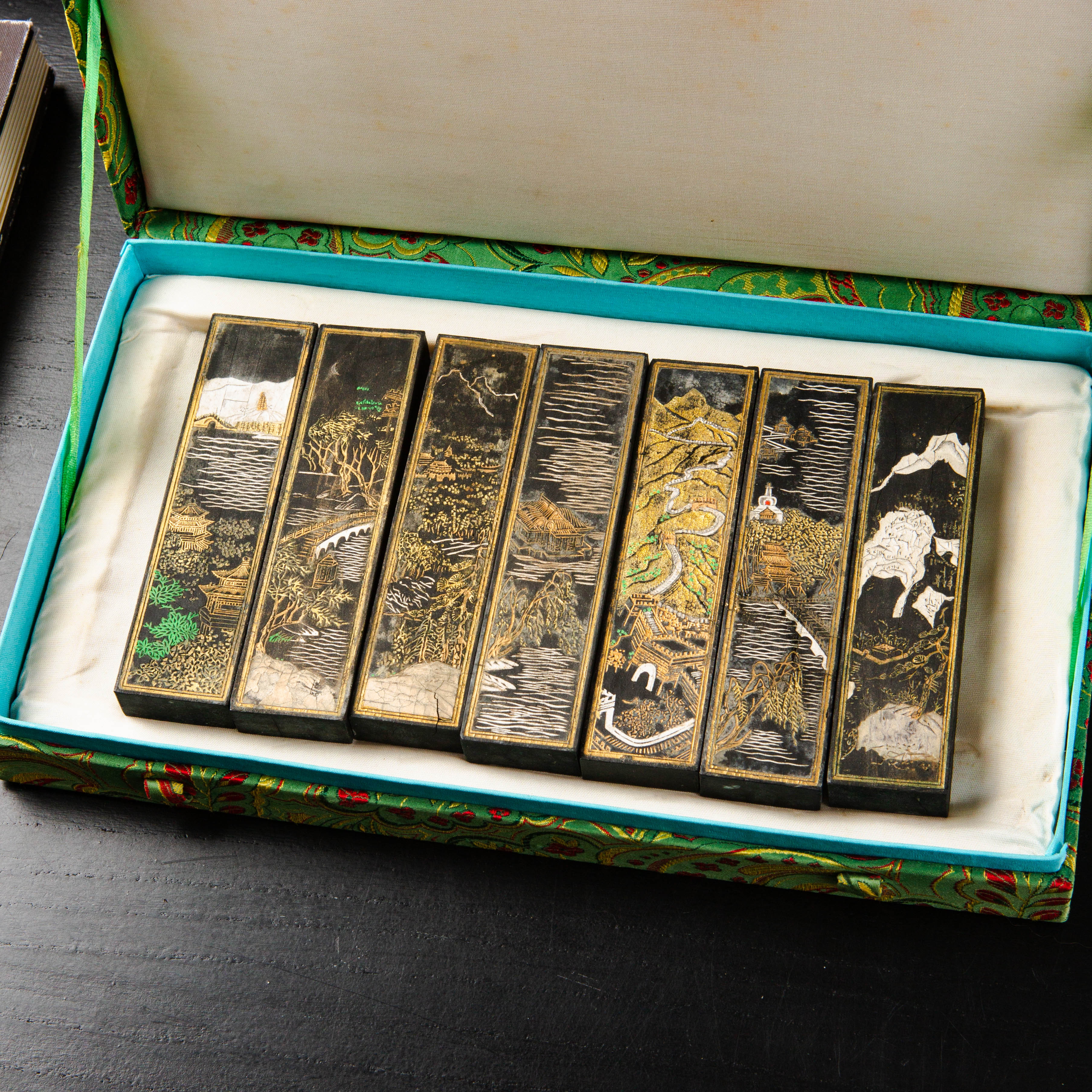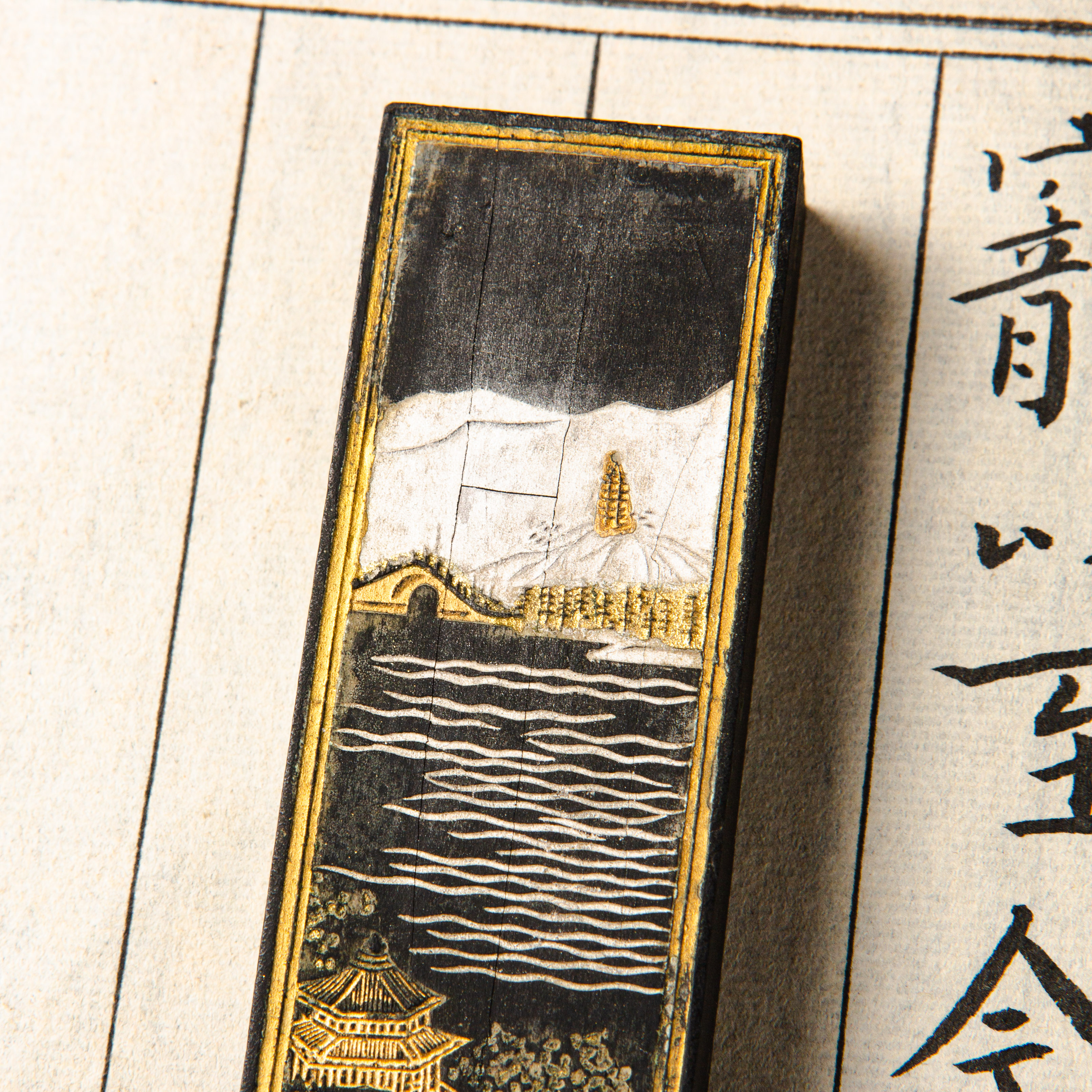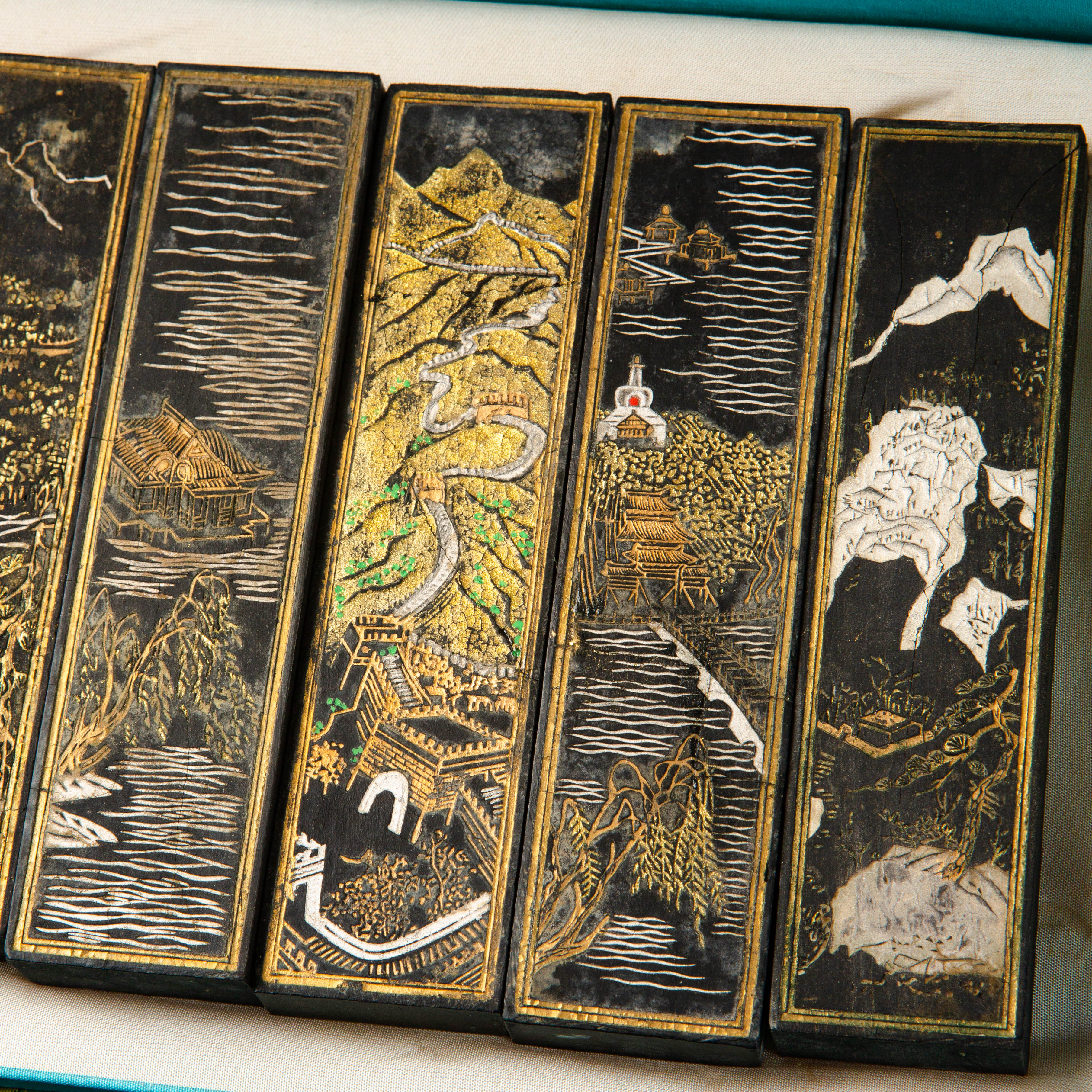 70年代北京墨汁厂制风景墨七锭,此墨材质细腻,雕版精美,市场上很难见到此款老墨,十分稀有难得。