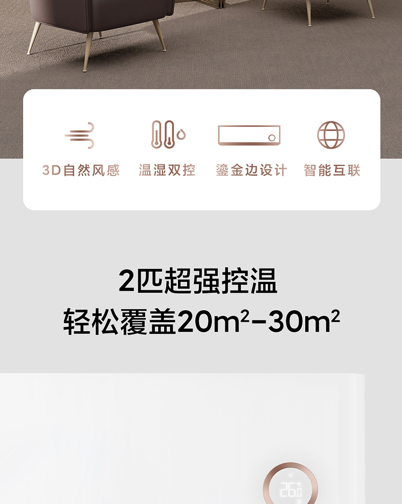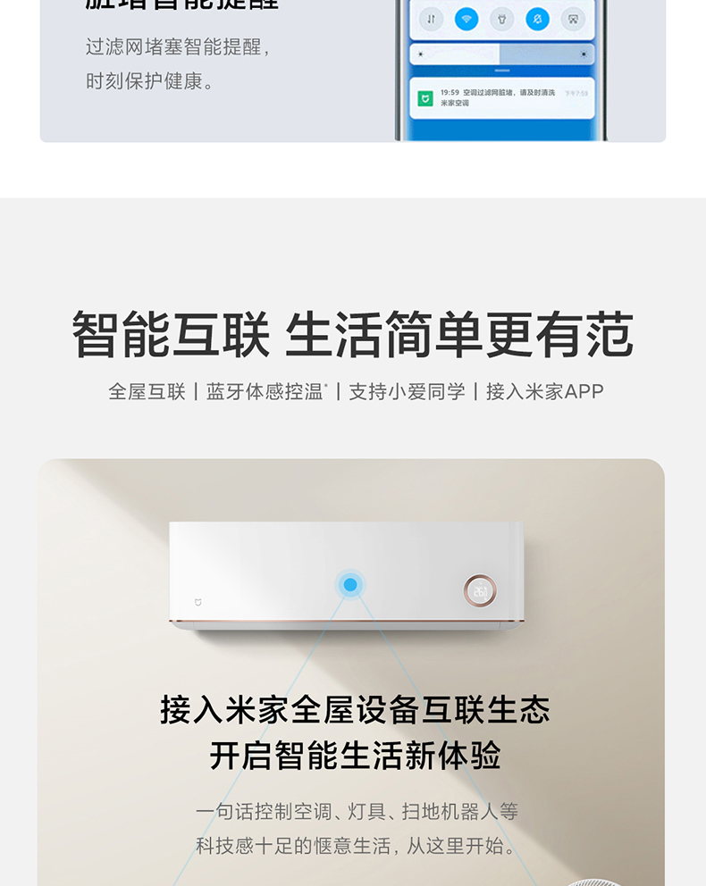 【小米热销】小米(MI)米家空调鎏金版2匹新一级能效语音控制巨省电变频冷暖智能清洁自然风壁挂式卧室挂机KFR-50GW/D1A1