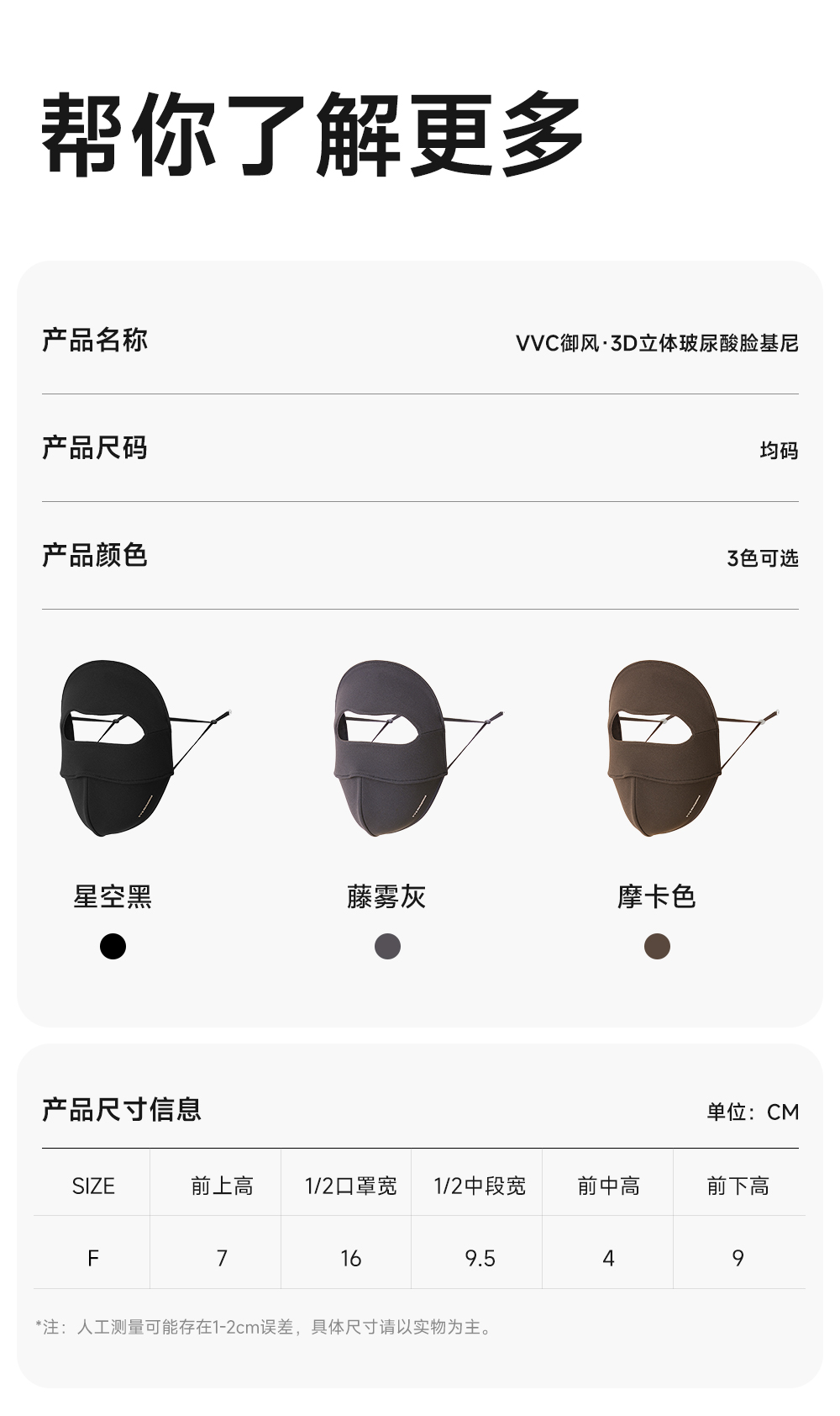 【文怡之选】VVC 御风·3D立体玻尿酸脸基尼 面罩 口罩 德绒内里 舒适透气 VTK5S513