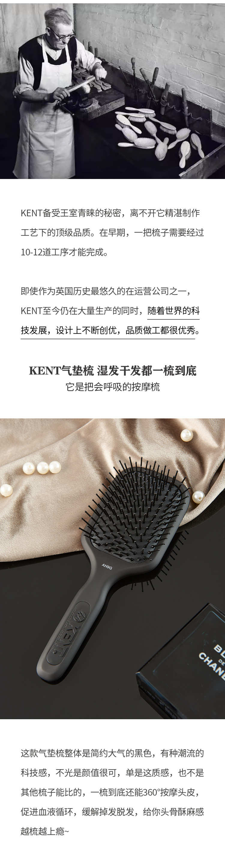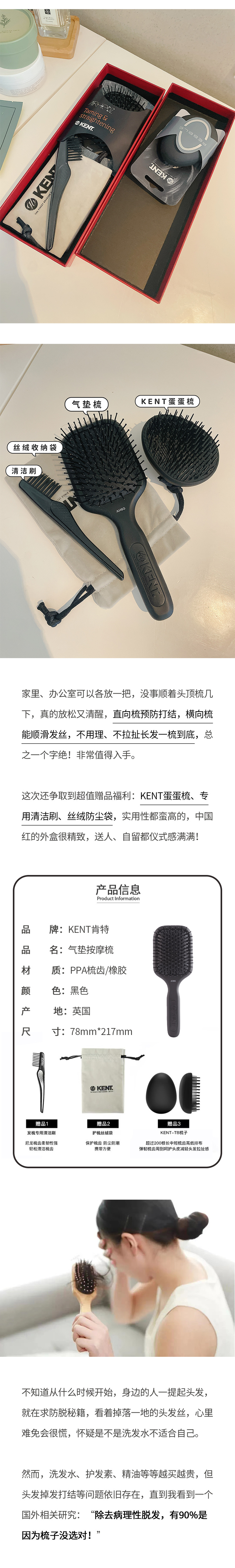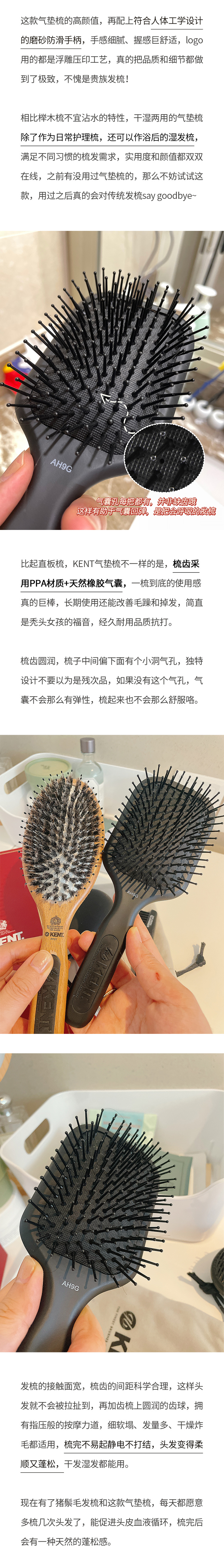 【2天左右/上海发中通】英国王室御用KENT气垫梳, 让梳头也能变成一种享受!独特的呼吸气囊设计,不扯头皮有效缓解脱发,还能温柔按摩头皮,促进血液循环!一梳即顺/干湿两用