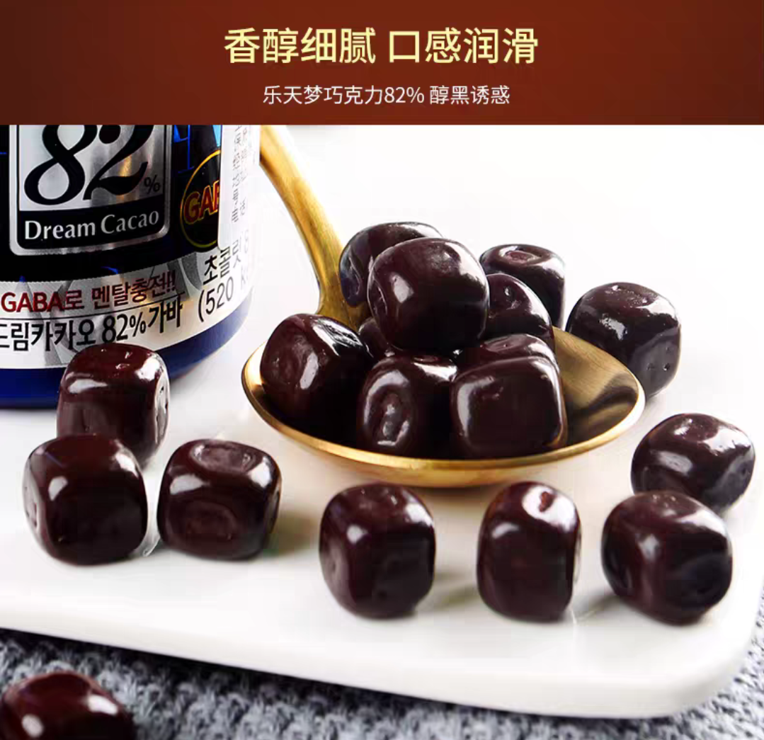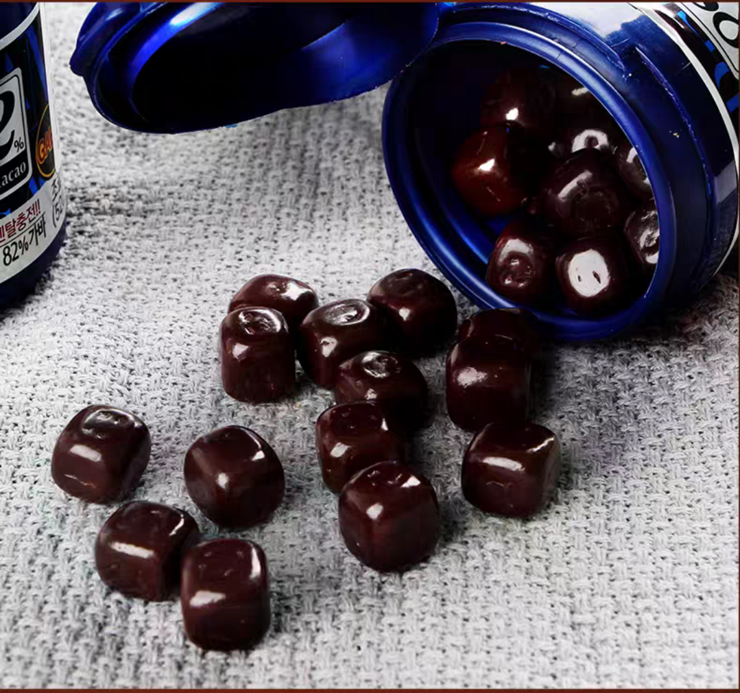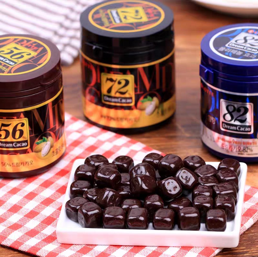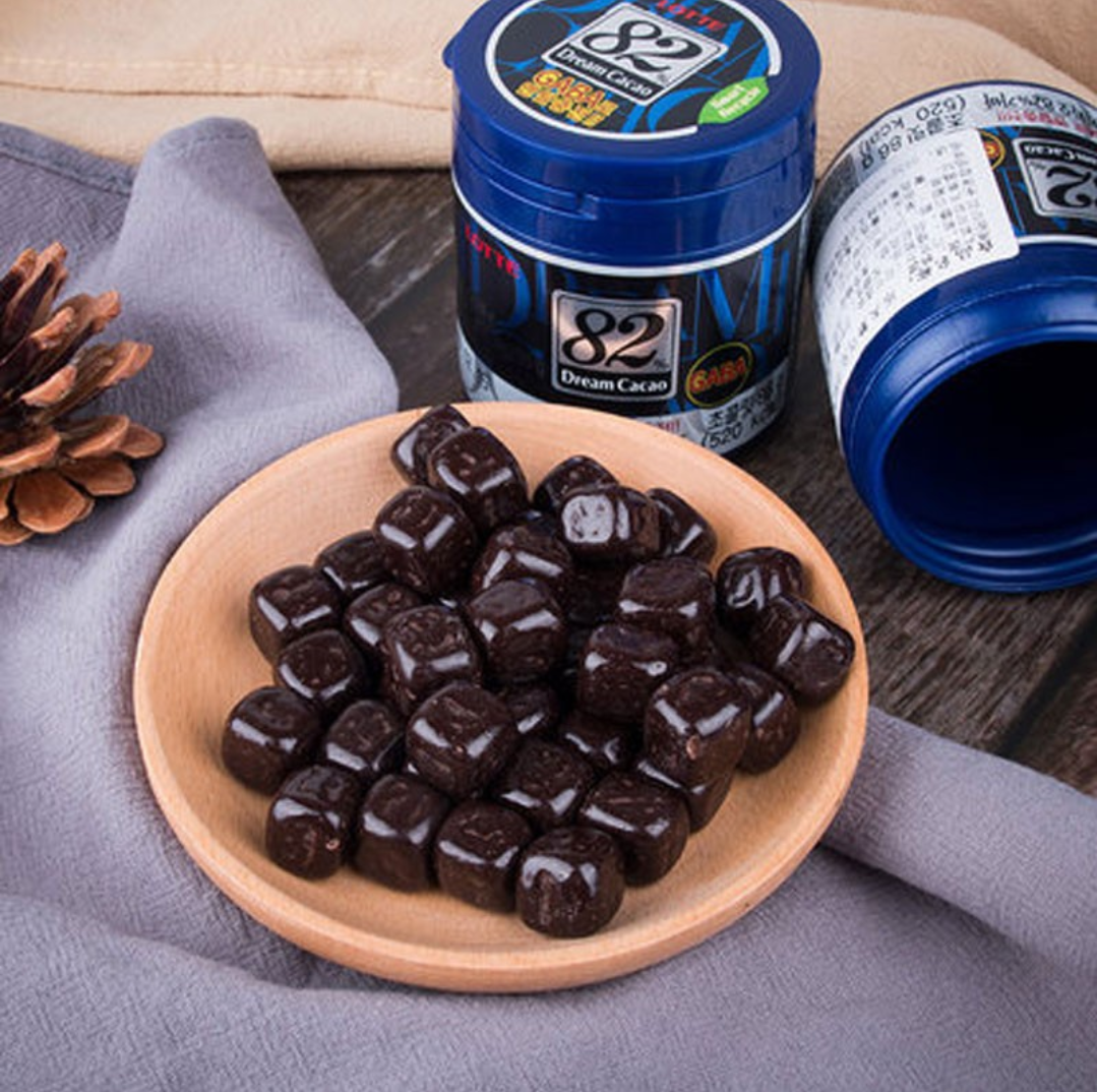 韩国乐天梦黑巧克力豆82%罐装儿童网红零食86g/盒
