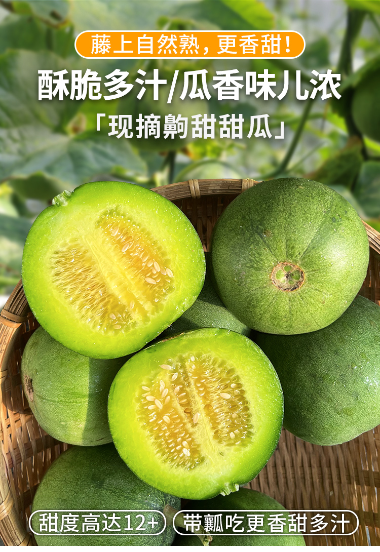 【齁甜甜瓜 味道特别浓郁】齁甜的甜瓜 藤上自然熟 瓜香味儿浓 酥脆多汁 香气十足 新鲜采摘 3斤