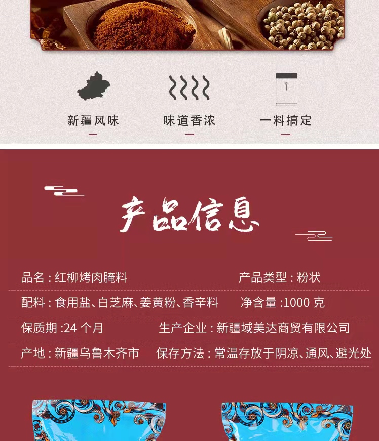 【1件起全国包邮】疆域秘烤 新疆红柳烤肉腌料 烧烤腌料调料(500g/1kg)