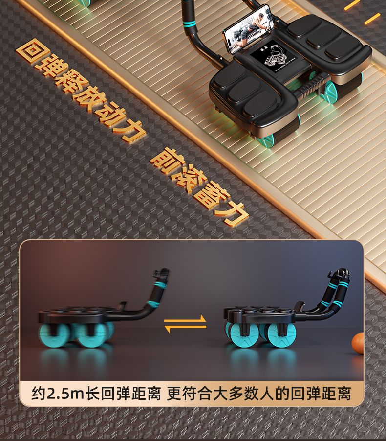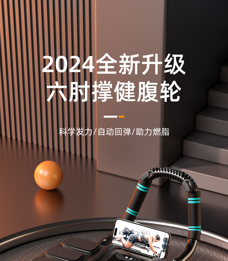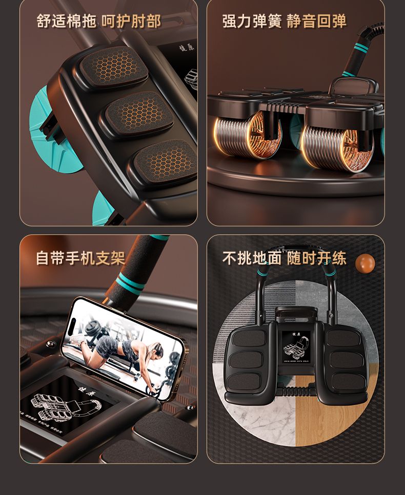 全新四轮带回弹六肘撑健腹轮男女锻炼腹肌减肥瘦肚子家用健身器材