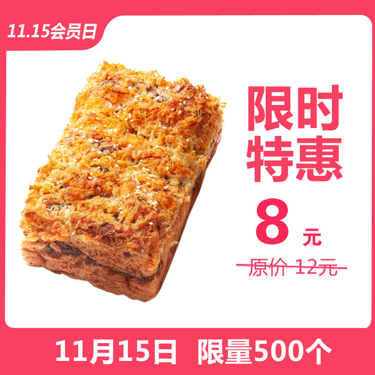 1.下单成功后自动获得价值12元优惠券一张,限量500张,每人限购5张,优惠券可兑换现烤红豆香松面包一个。