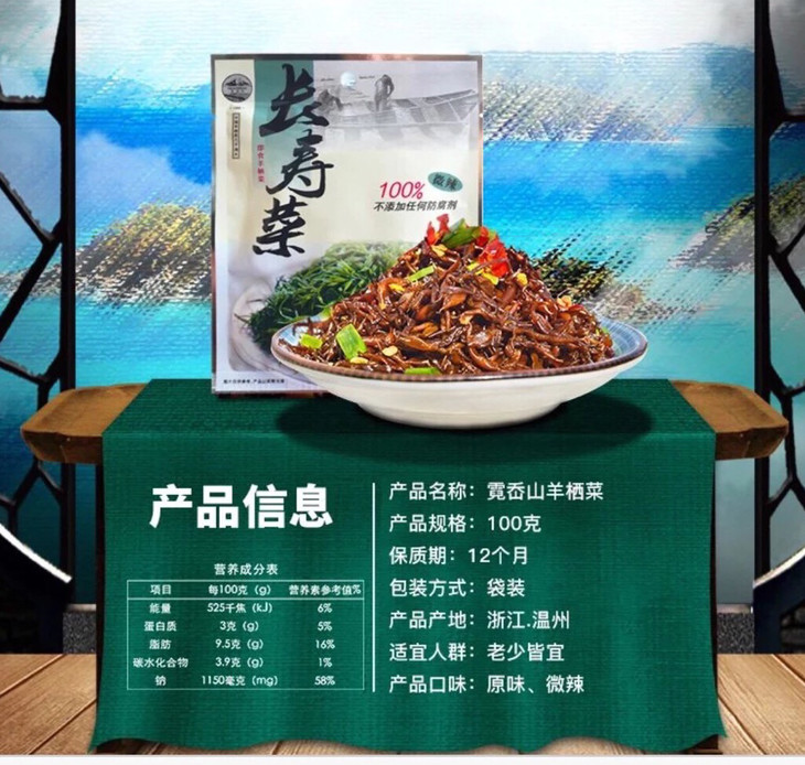 霓岙山羊栖菜”俗称“大麦菜”,是暖温带性的经济海藻,属马尾藻科,产于温州沿海岛礁,现洞头已大量养殖。其中洞头县自1989年人工养殖羊栖菜获成功后,规模逐年扩大,现养殖面积已达3多万亩,年产干品菜7000吨,加工产值8000万元。加工重点企业13家,90%的产品出口日、韩、欧美等国家,占国内出口份额的90%以上,成为全国羊栖菜养殖、加工和出口基地,在日本市场拥有极高的信誉度与美誉度。此外,还不断革新羊栖菜加工工艺和设备,开发出即食羊栖菜、羊栖菜茶、羊栖菜酱、羊栖菜饮料等10多个系列产品,增强了市场开拓能力,形成产供销一条龙的产业化格局,被中国优质农产品开发服务协会命名为“中国羊栖菜之乡”称号。