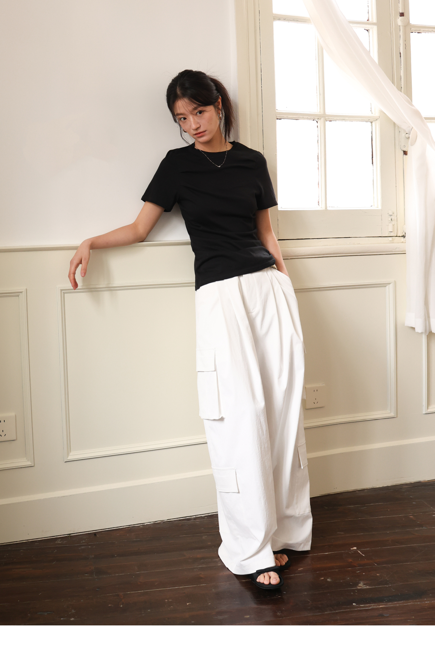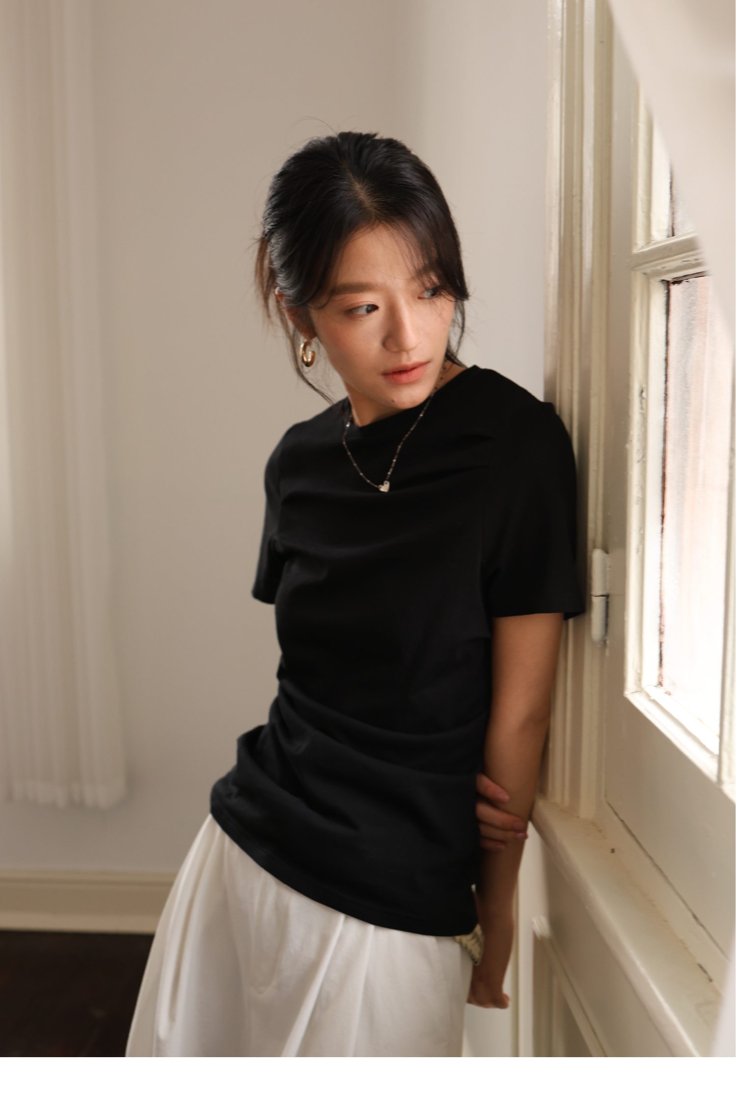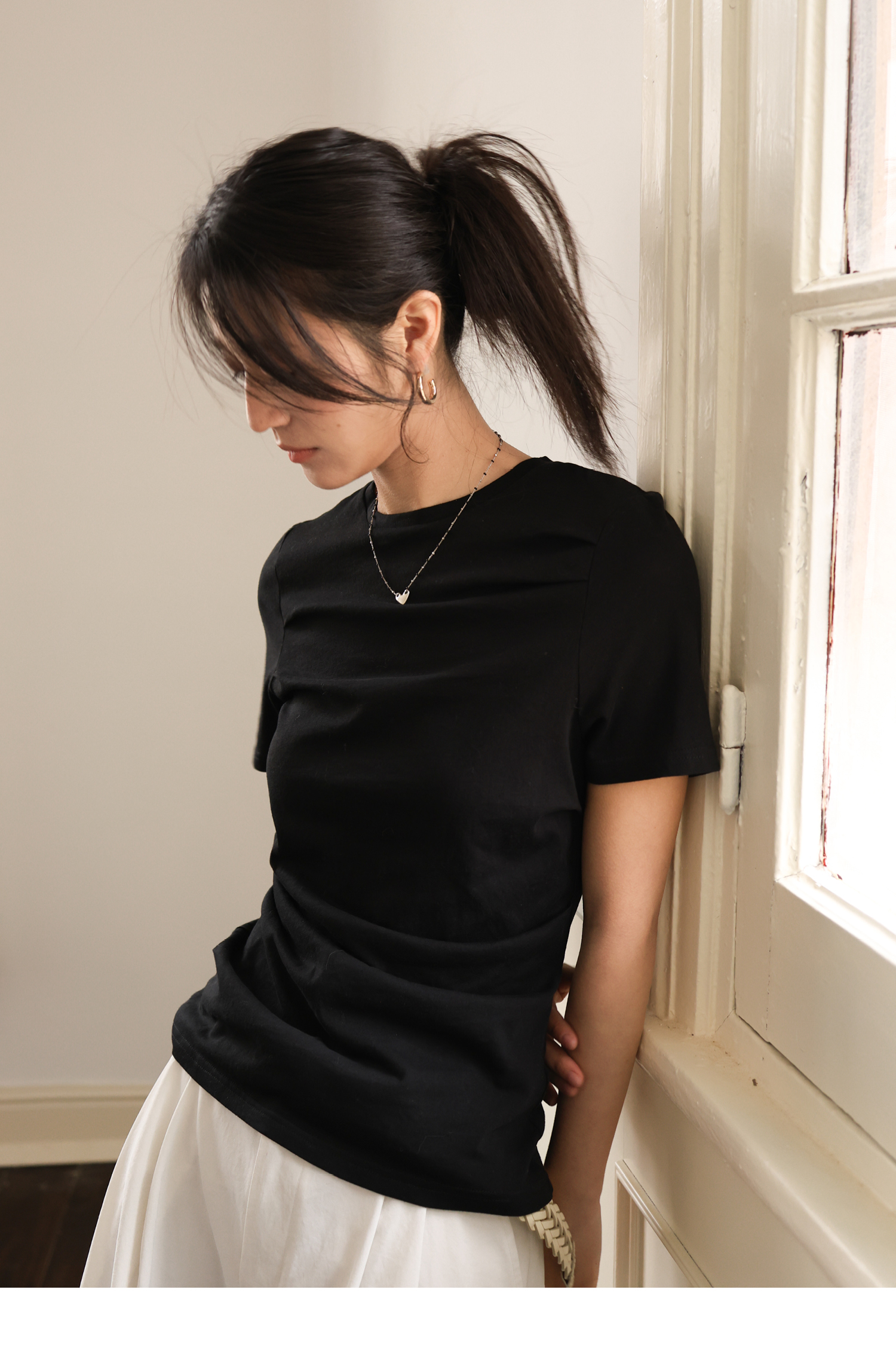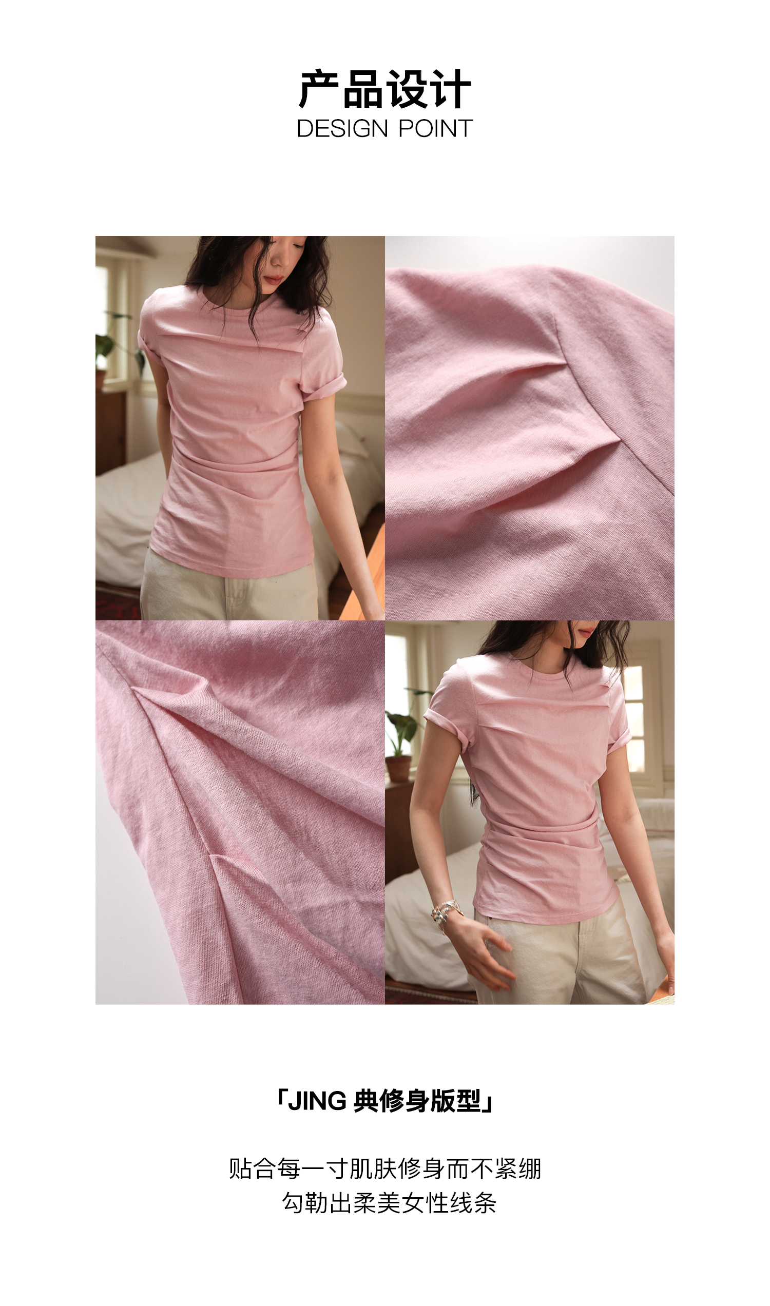 素舶 高支高密竹节棉混纺亲肤透气褶皱短袖T恤上衣SUPERSCAPE