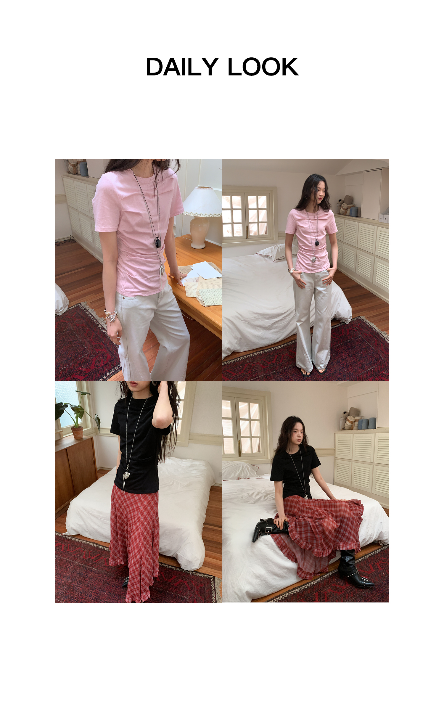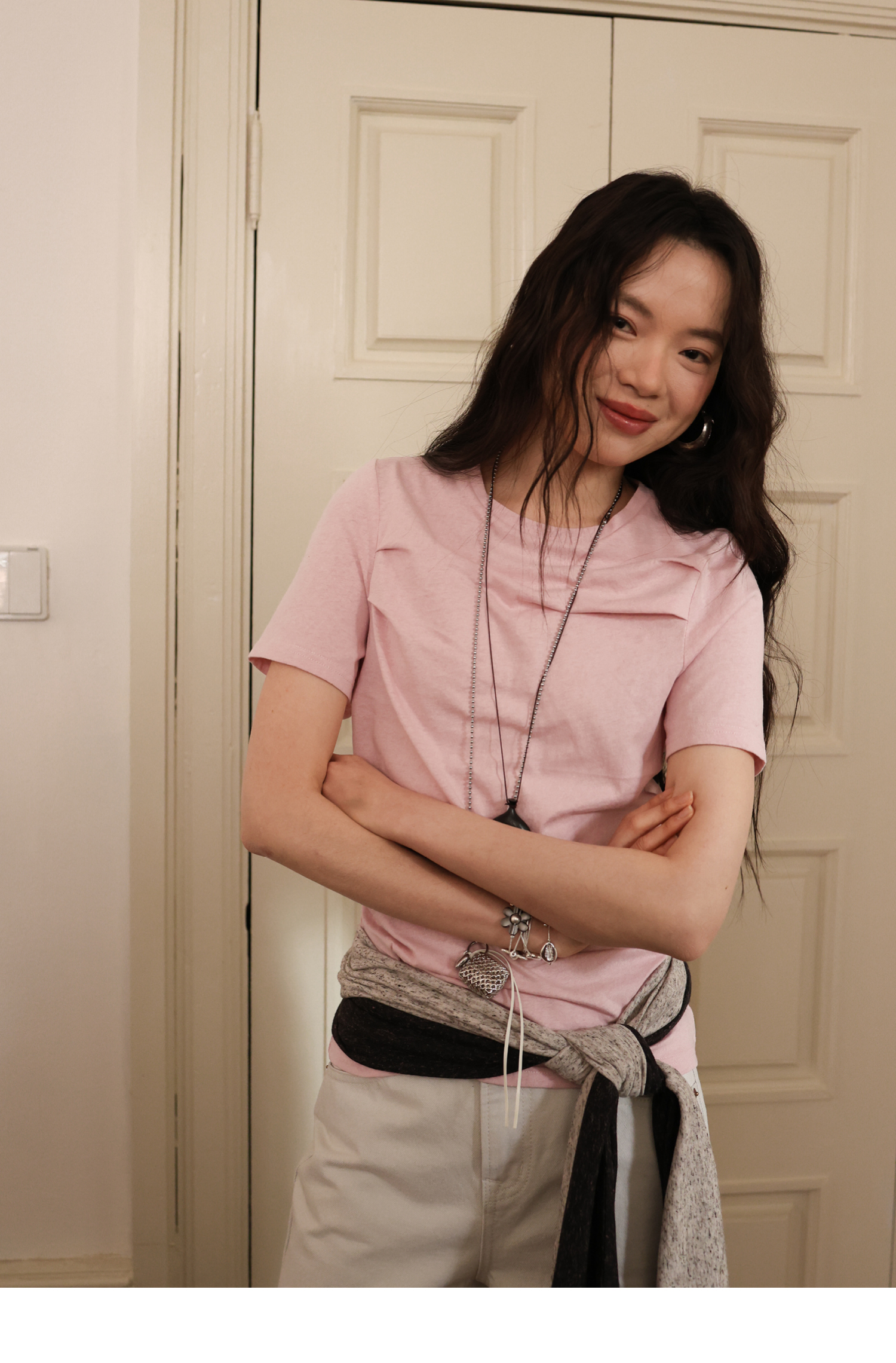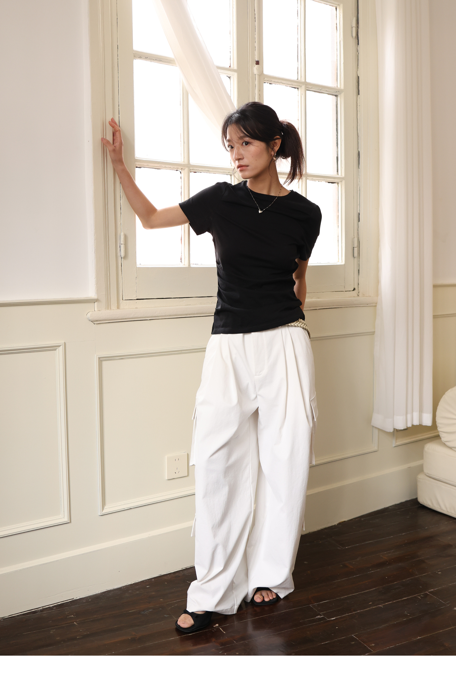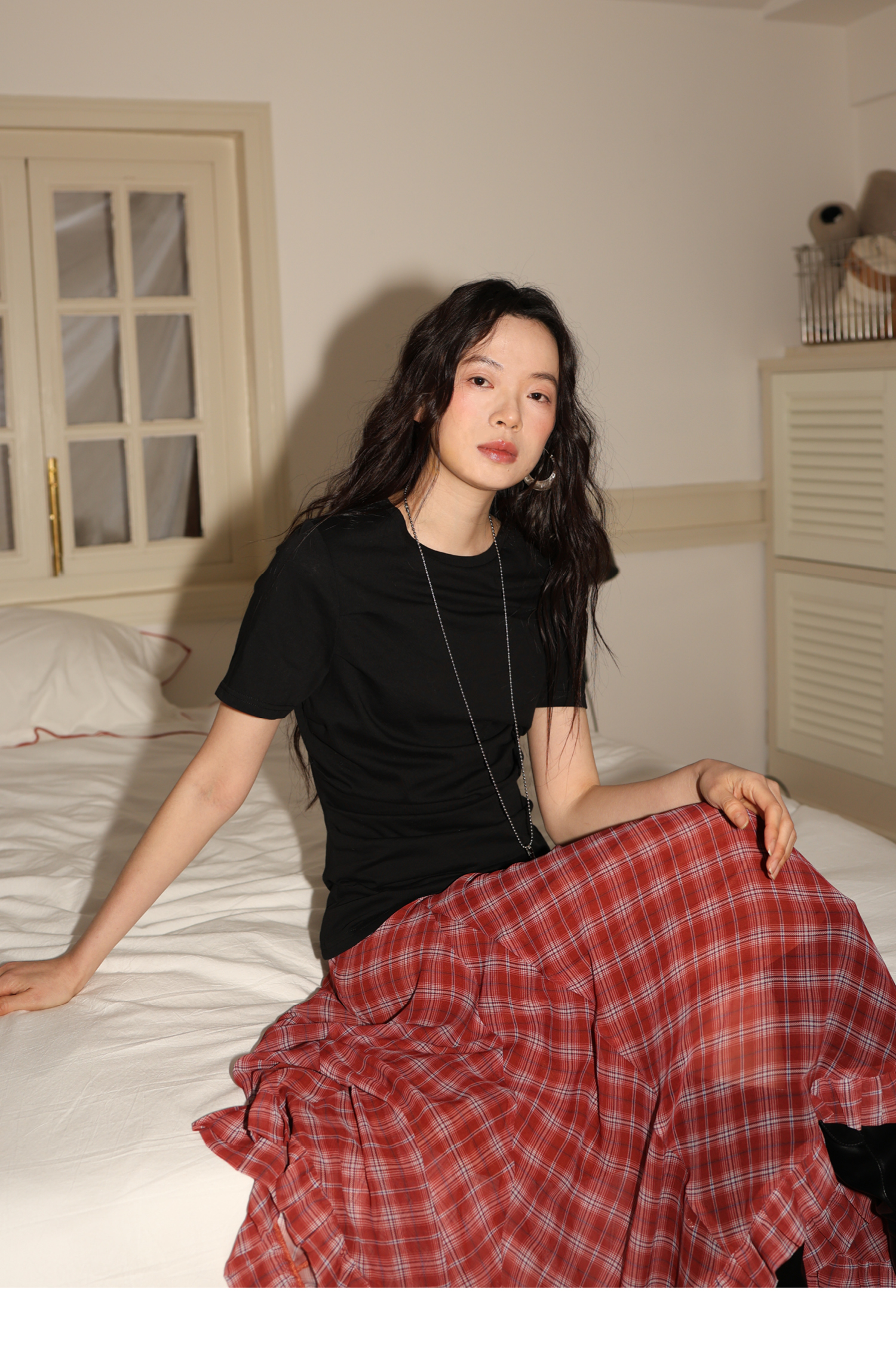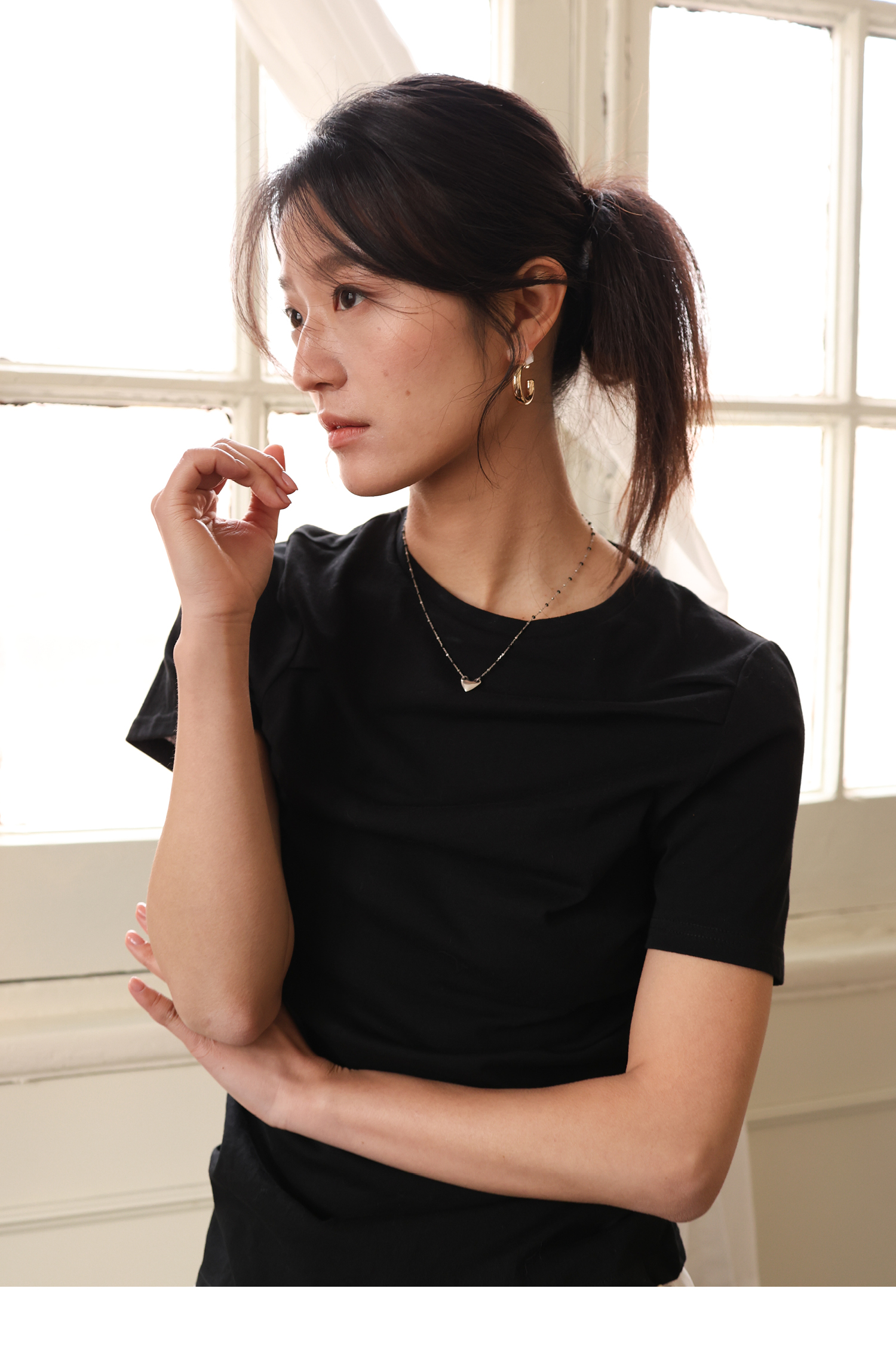 素舶 高支高密竹节棉混纺亲肤透气褶皱短袖T恤上衣SUPERSCAPE