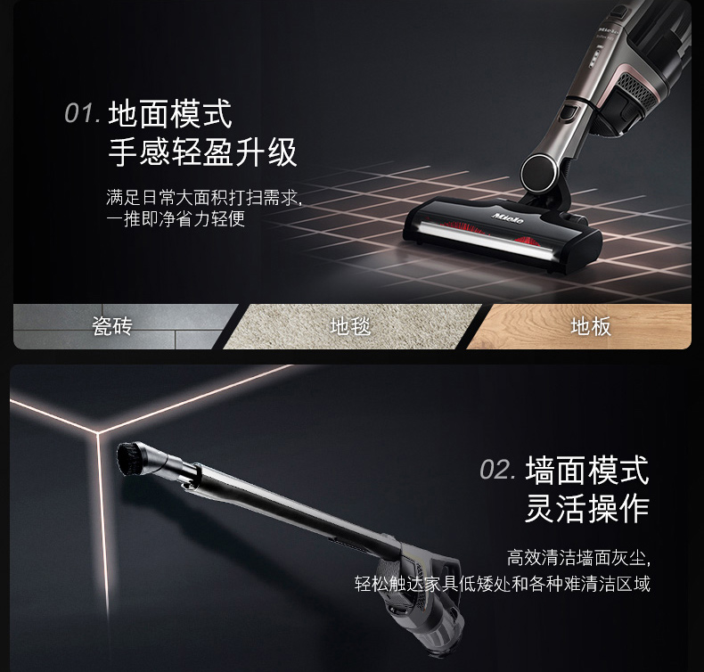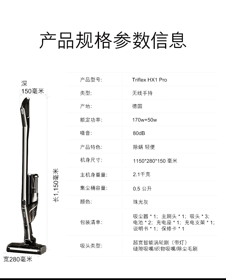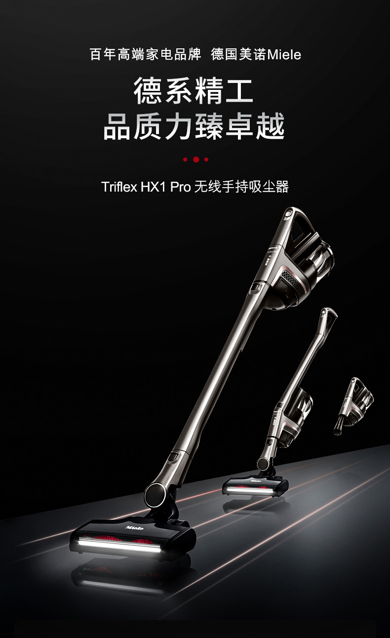 【6F】美诺(Miele)吸尘器手持无线家用强劲吸力进口智能清洁LED灯带TriflexHX1Pro珠光灰