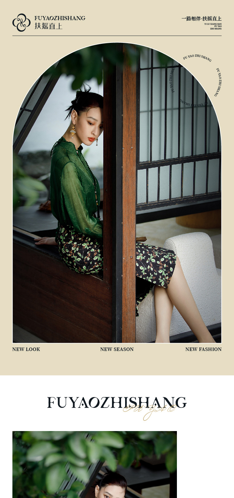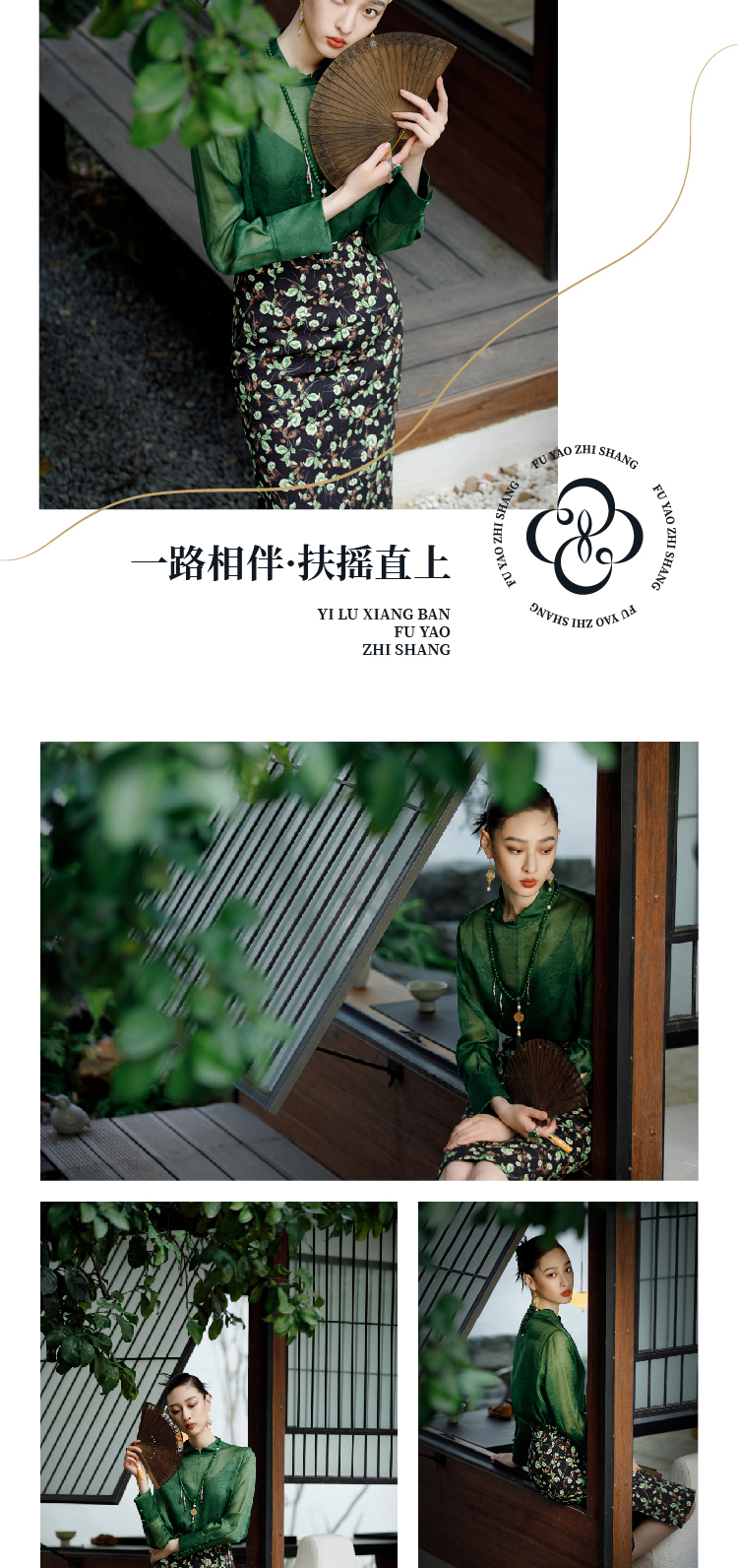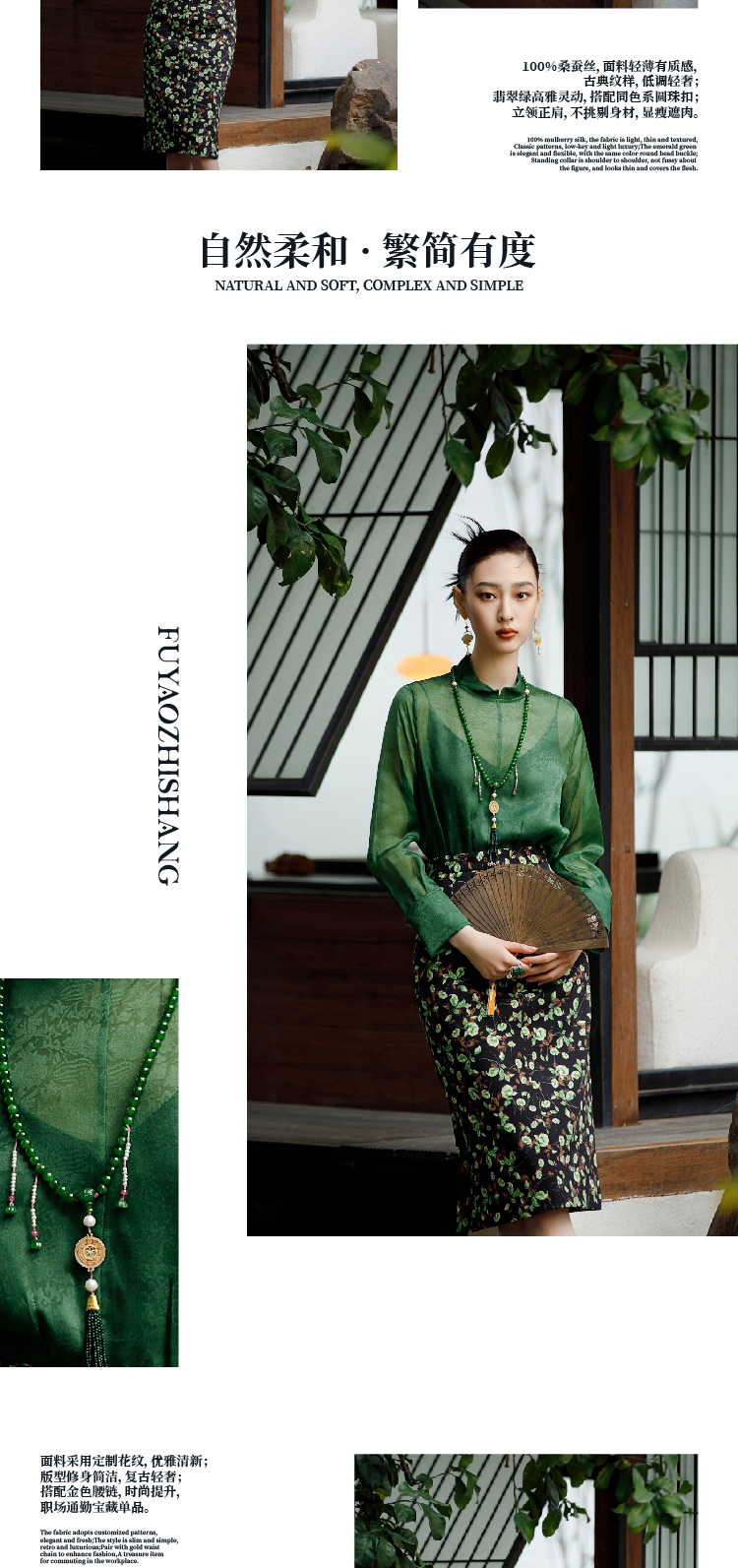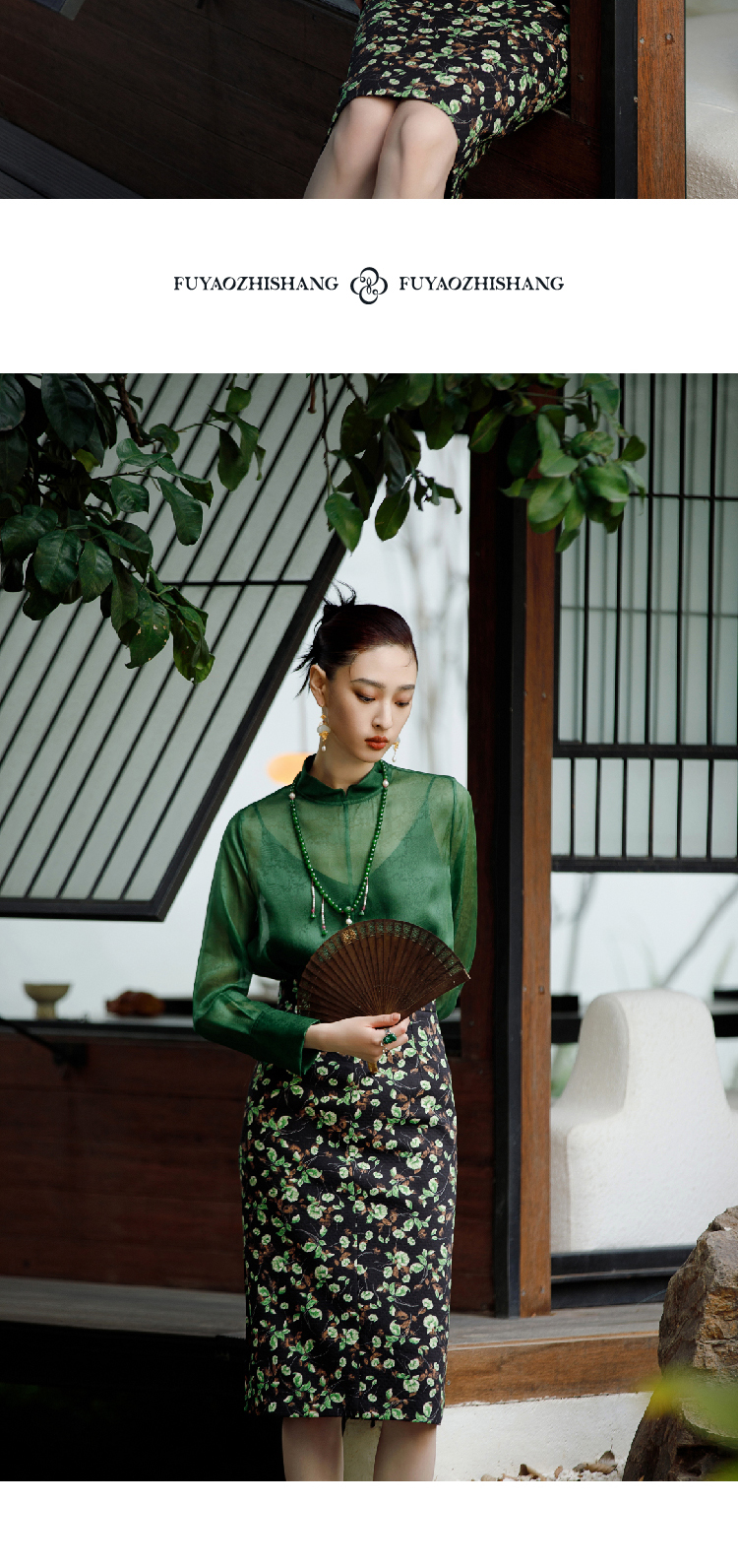 扶摇系列 时尚提花优雅半裙(腰带另外下单)复古轻奢立领衬衫
