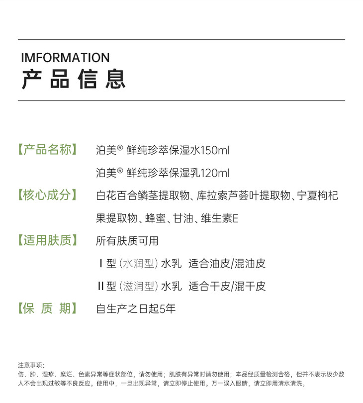 【官方授权】泊美鲜纯珍萃保湿水乳套装