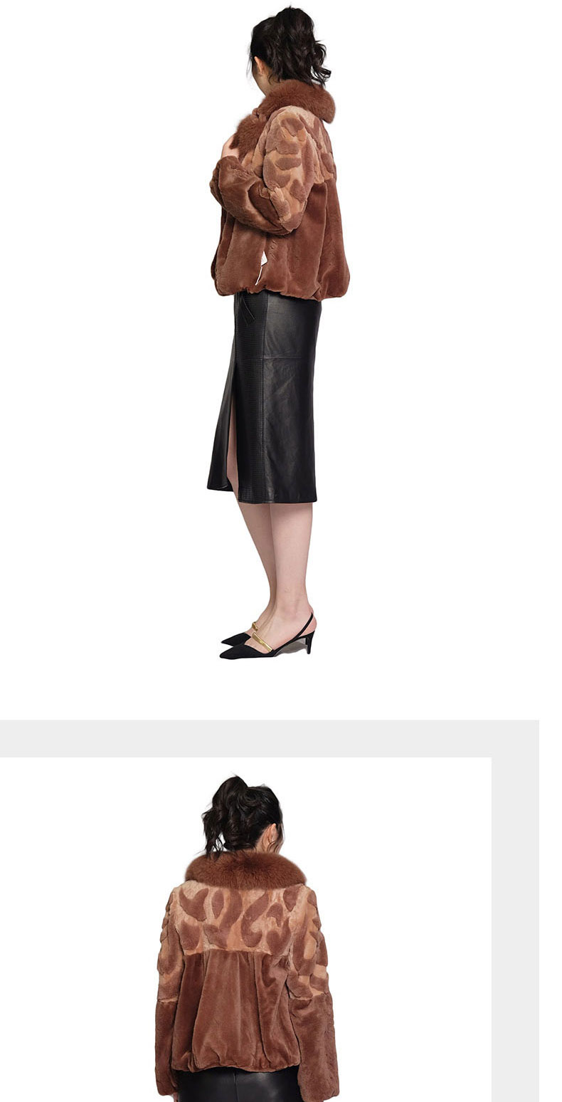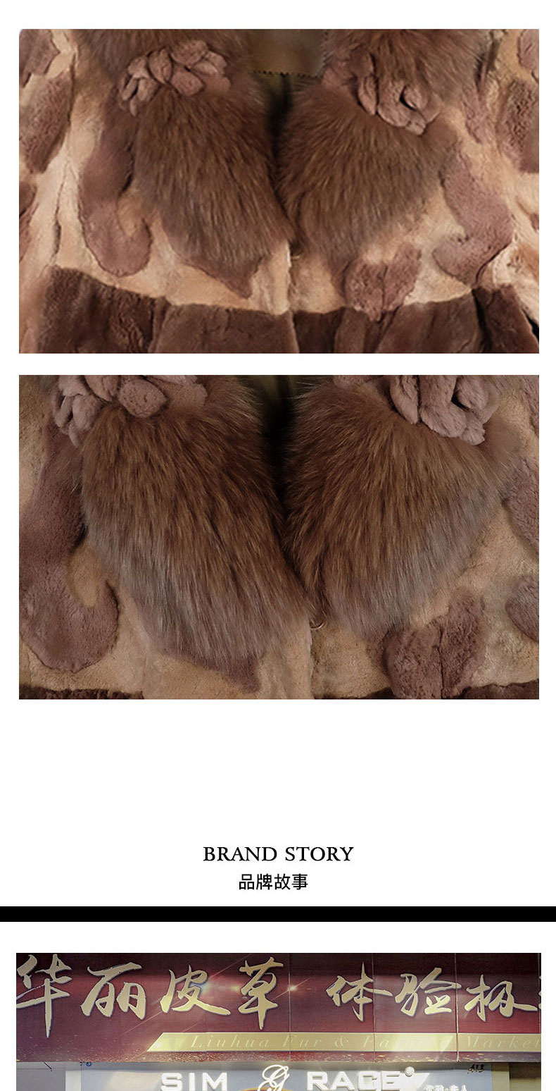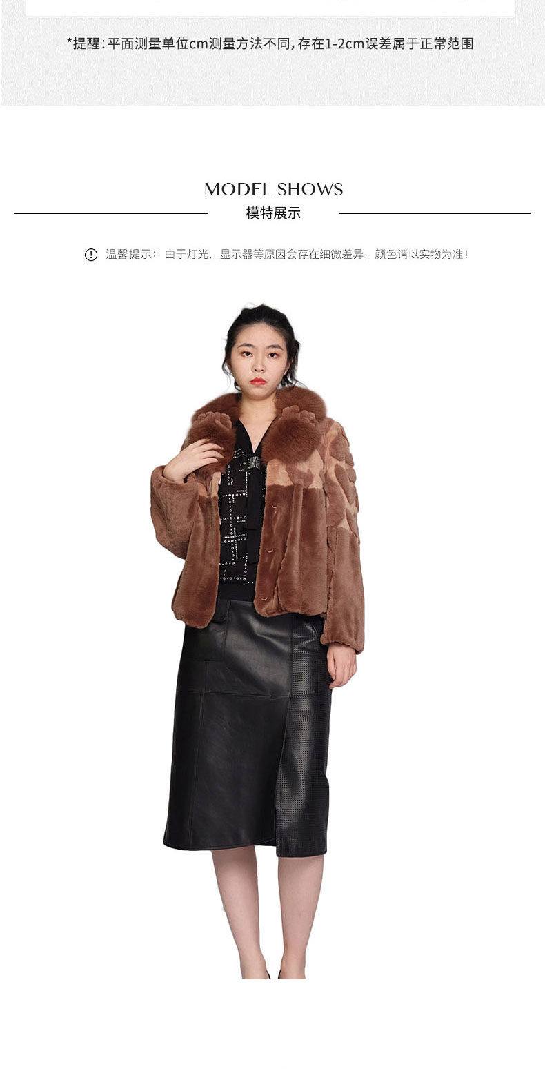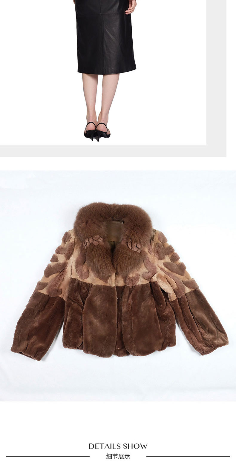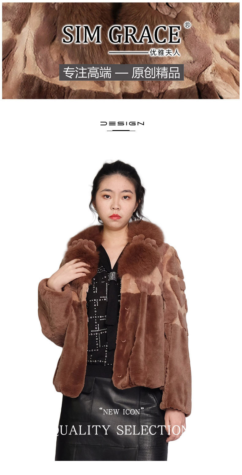 SIM GRACE 优雅夫人 女士经典的剪毛进口獭兔毛手工镶花狐狸毛领拼色外套