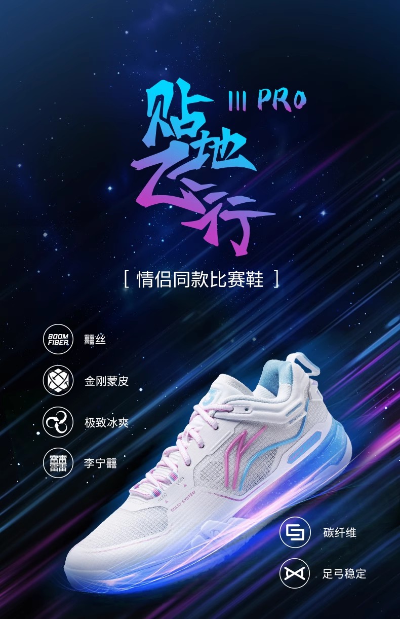 李宁羽毛球鞋贴地飞行ⅢPRO男女同款轻量高回弹羽毛球专业比赛鞋AYAV001