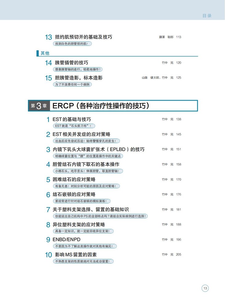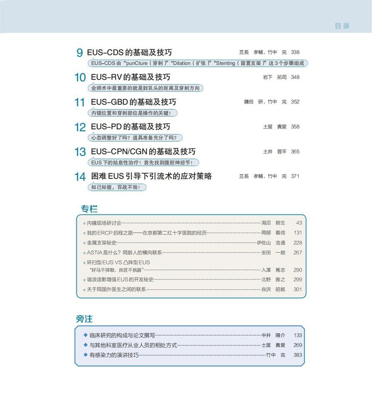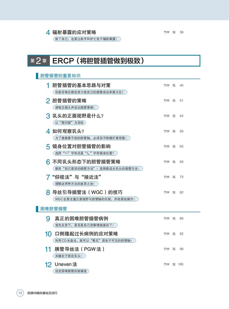 本书由日本近畿大学病院的竹中完教授主编,谢威、李嫱、祝建红主译。作为日本关西地区胆胰内镜的精华荟萃,主要涉及ERCP及EUS(包括环扫与凸阵)的操作技巧等内容。虽然书名写着基础,但是很多内容其实都属于进阶操作。本书集好看、好玩、有趣、通俗易懂等优点于一体,最大特点在于通过大量动画、插图、比喻对ERCP操作及EUS操作进行了详尽刻画,侧重点在于操作技巧本身,目的简单粗暴!增加了大量ERCP及EUS操作知识点。像ERCP中金属支架的留置、EUS-CPN/CGN、EUS-GBD、EUS-RV、EUS-PD等内容都在本书中进行详细的描述。甚至有些国内几乎未听说过的新方法(Uneven法)也在本书中加以介绍。