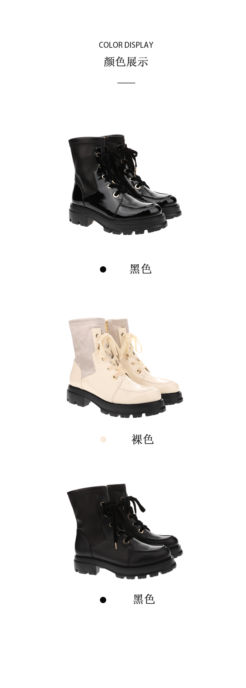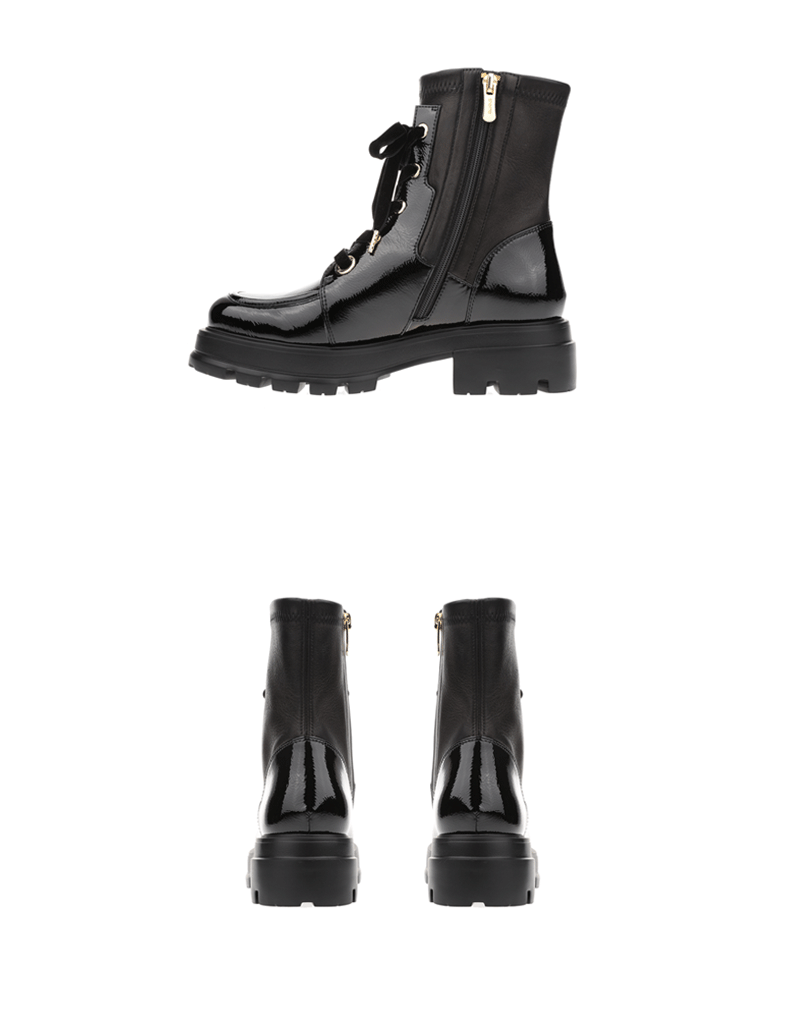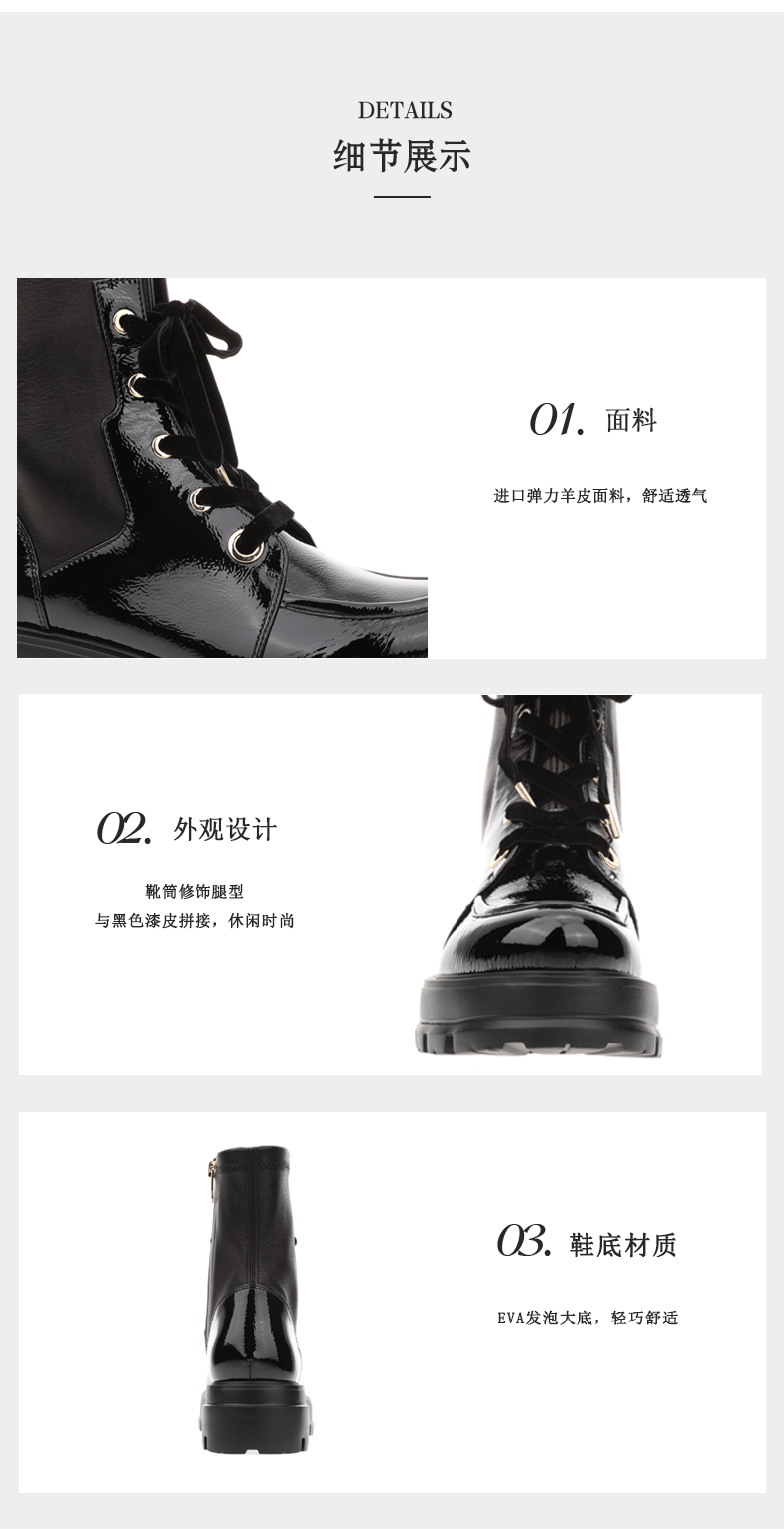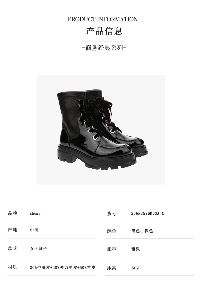 sheme进口弹力羊皮面料拼接漆皮修饰腿型女士弹力短靴可定制