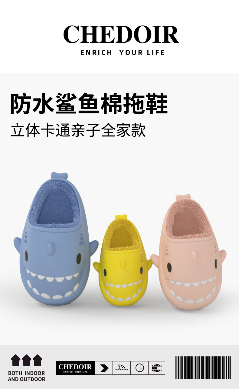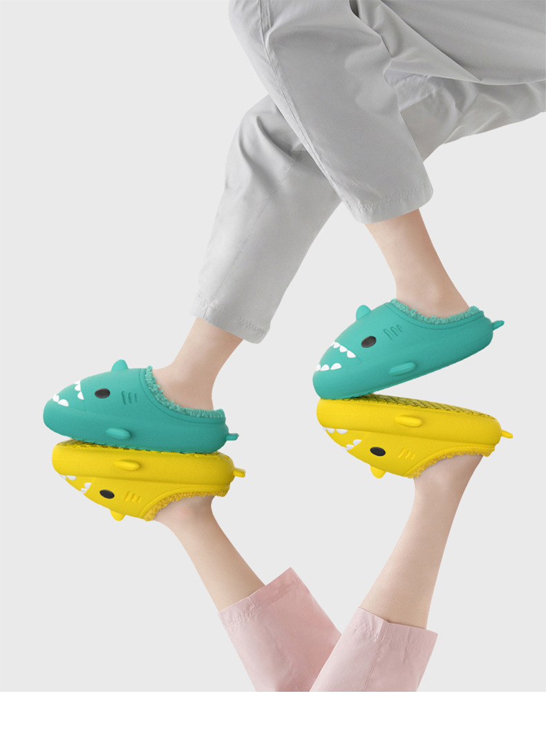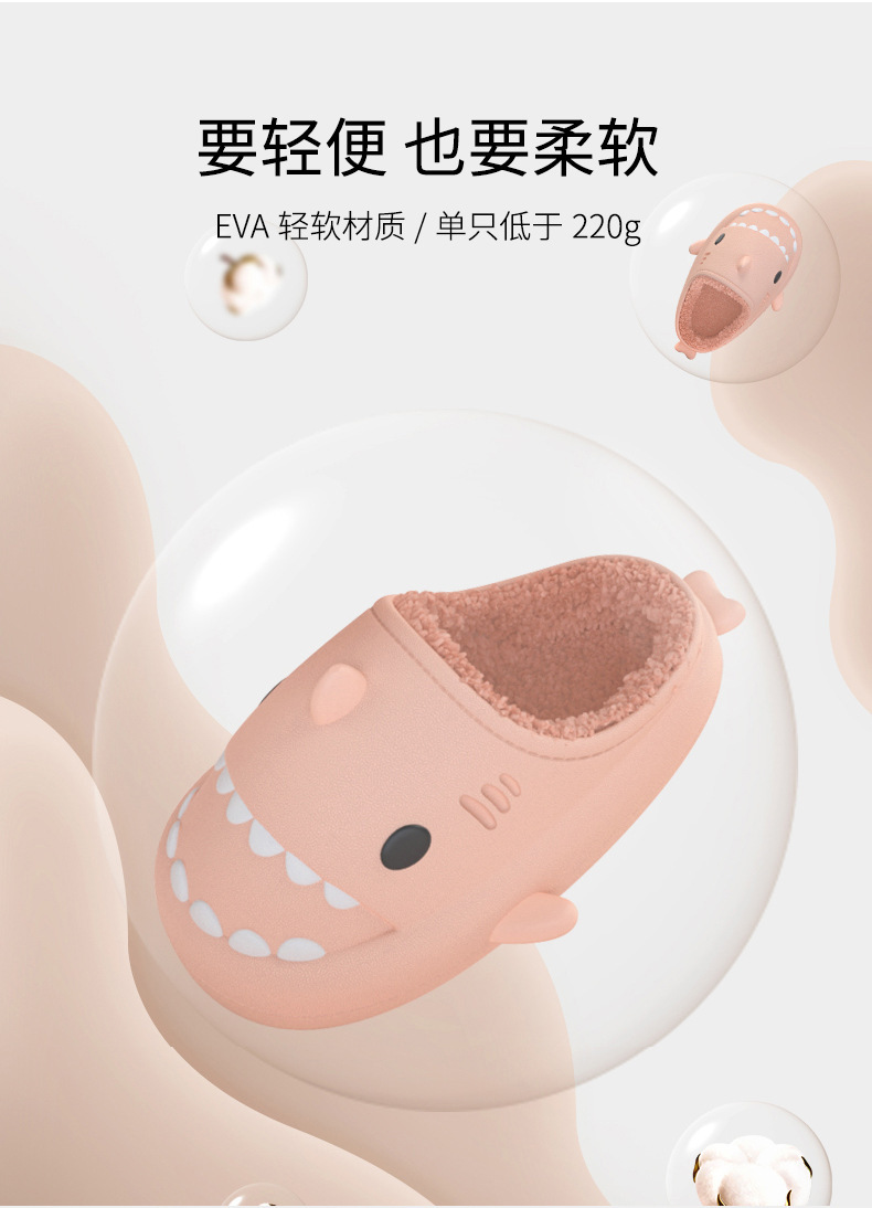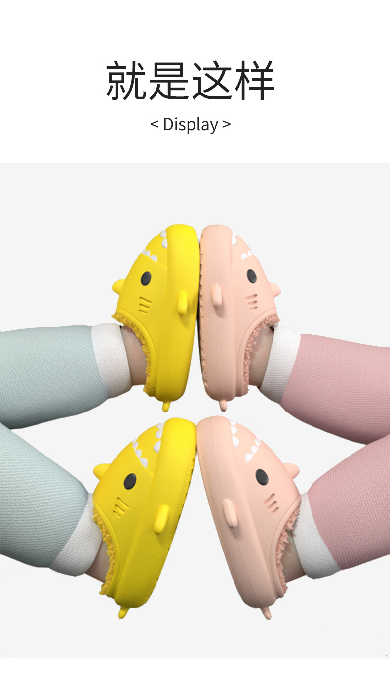 【超萌!eva软底加绒棉拖鞋】立体卡通亲子全家款,防水鲨鱼棉拖鞋,行走的被窝,加厚柔软鞋底,情侣保暖毛毛棉拖鞋L