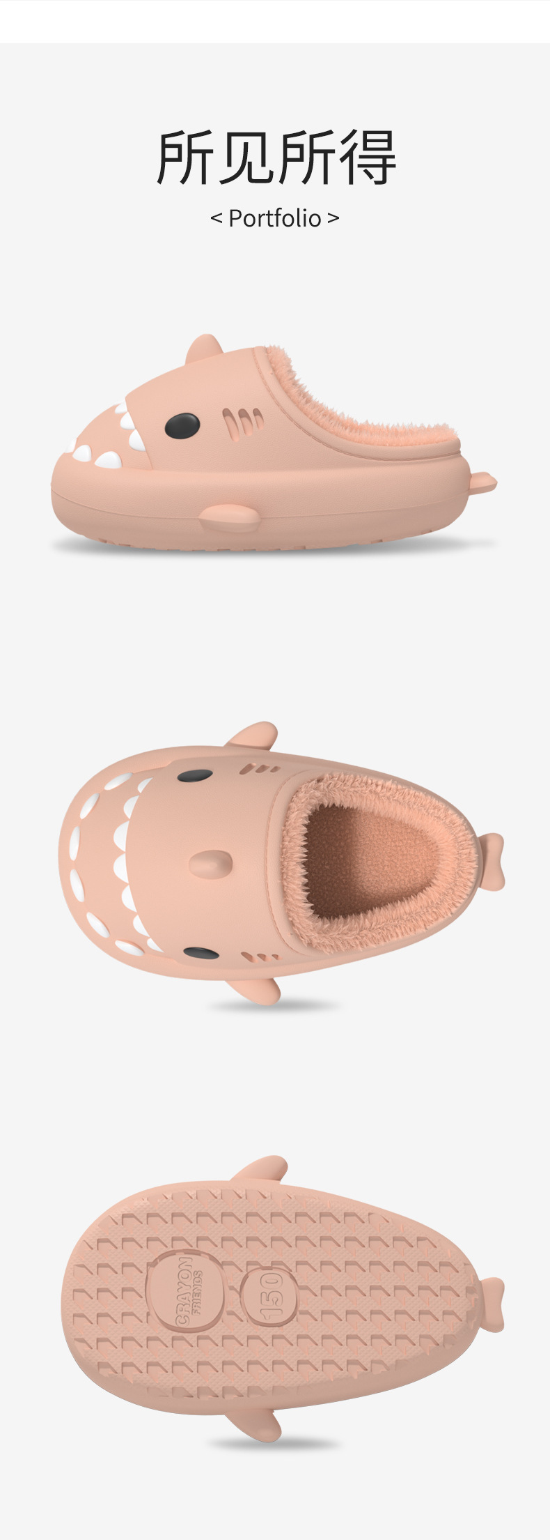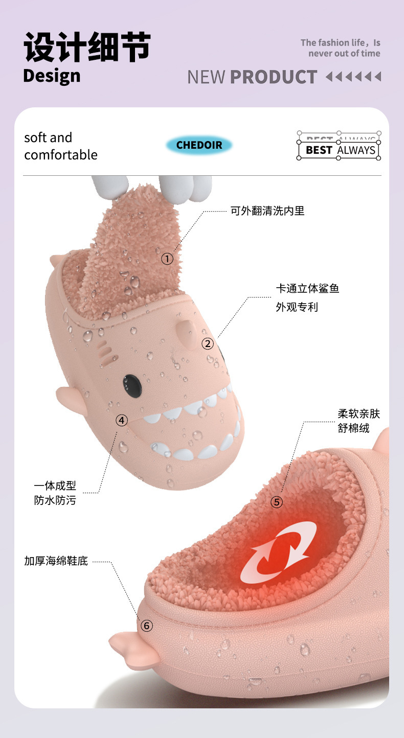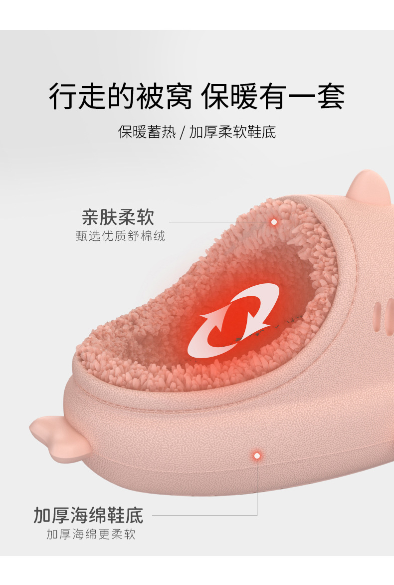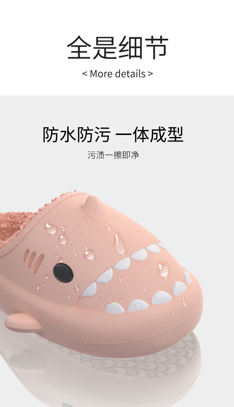 【超萌!eva软底加绒棉拖鞋】立体卡通亲子全家款,防水鲨鱼棉拖鞋,行走的被窝,加厚柔软鞋底,情侣保暖毛毛棉拖鞋L