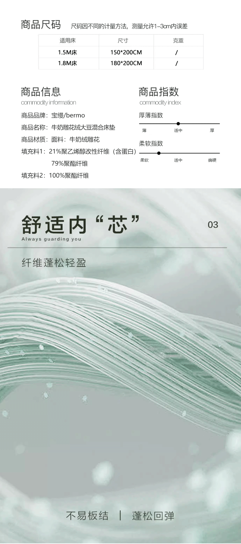 10楼宝缦 牛奶雕花绒大豆混合床垫 180*200 吊牌价1280元 活动价599/条
