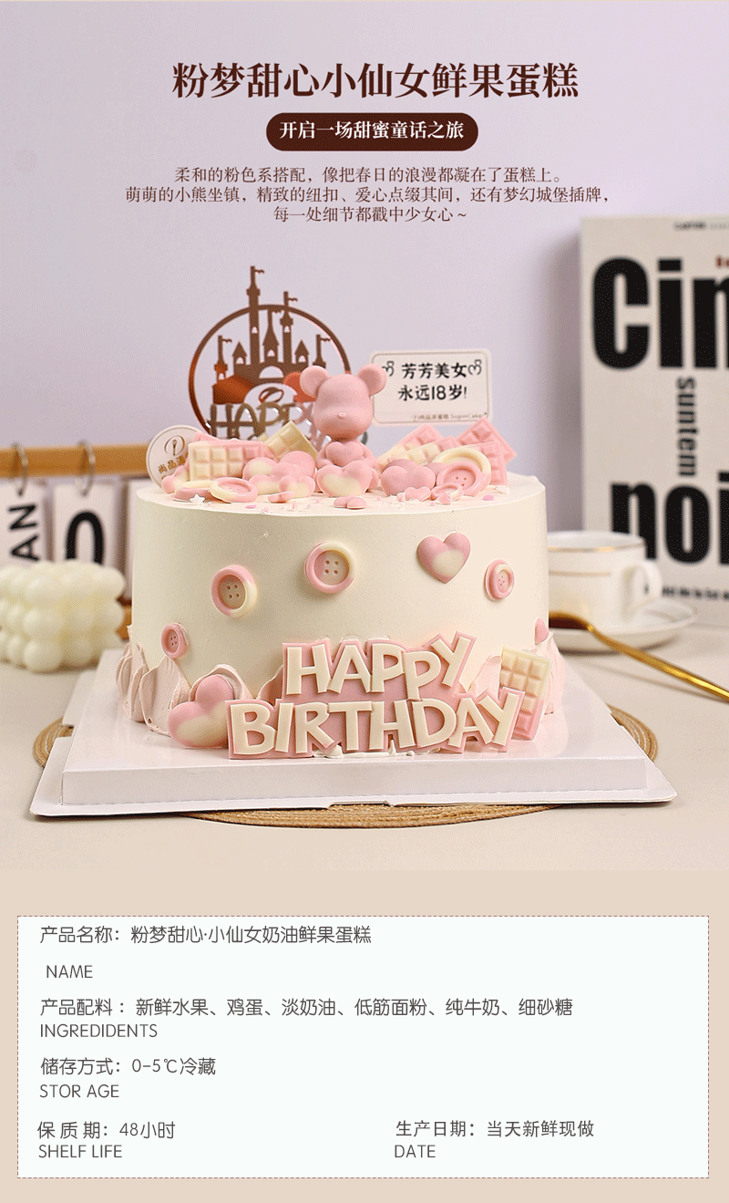 粉梦甜心-小仙女奶油鲜果蛋糕,为你开启一场甜蜜童话之旅~【惠州】