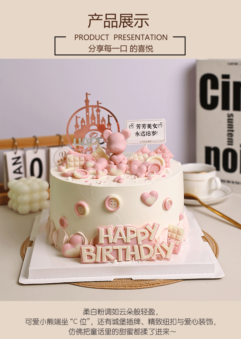 我们坚持当日接单、新鲜现做,拒绝罐头果肉与植物奶油,让每一口都保留食材本真的鲜活清甜。生活需要一点甜,我们的蛋糕不只是一份甜品,更是传递快乐的仪式感,为你带来视觉与味蕾的双重满足~