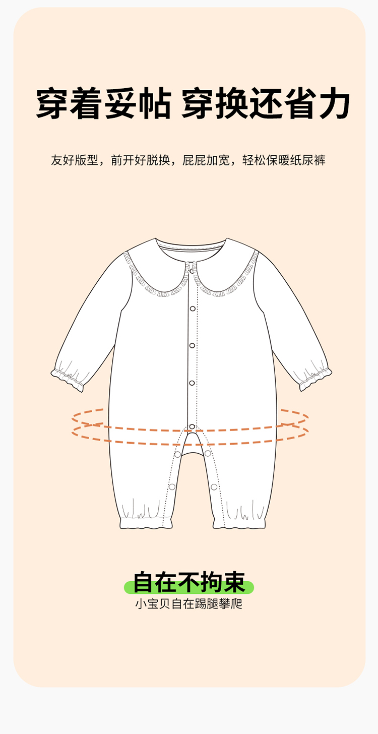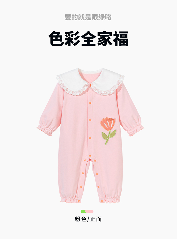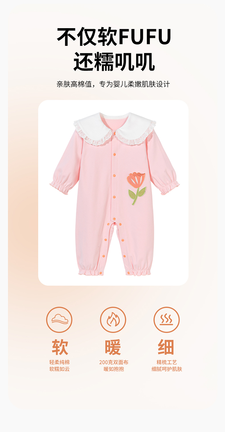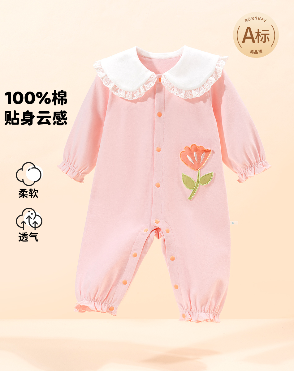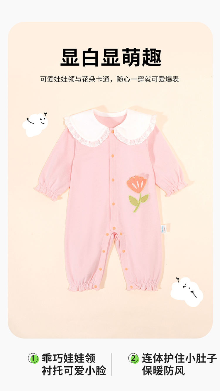 贝贝怡婴儿长袖连体衣春秋季新生儿爬爬服初生宝宝舒适哈衣ZB1DL008
