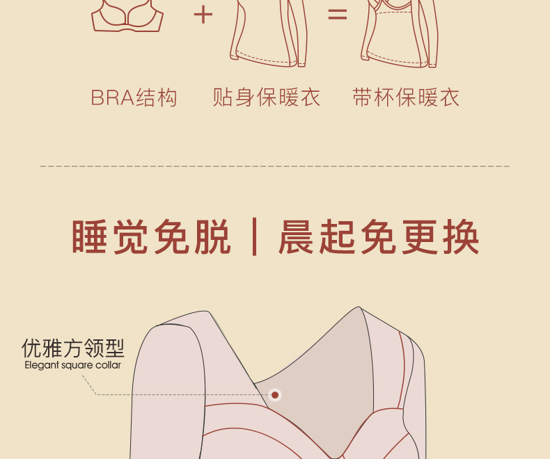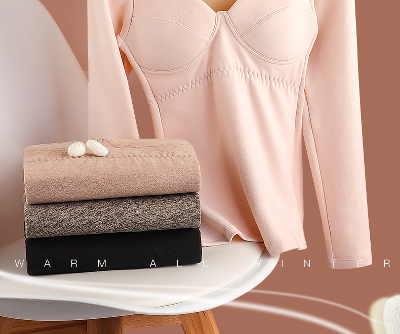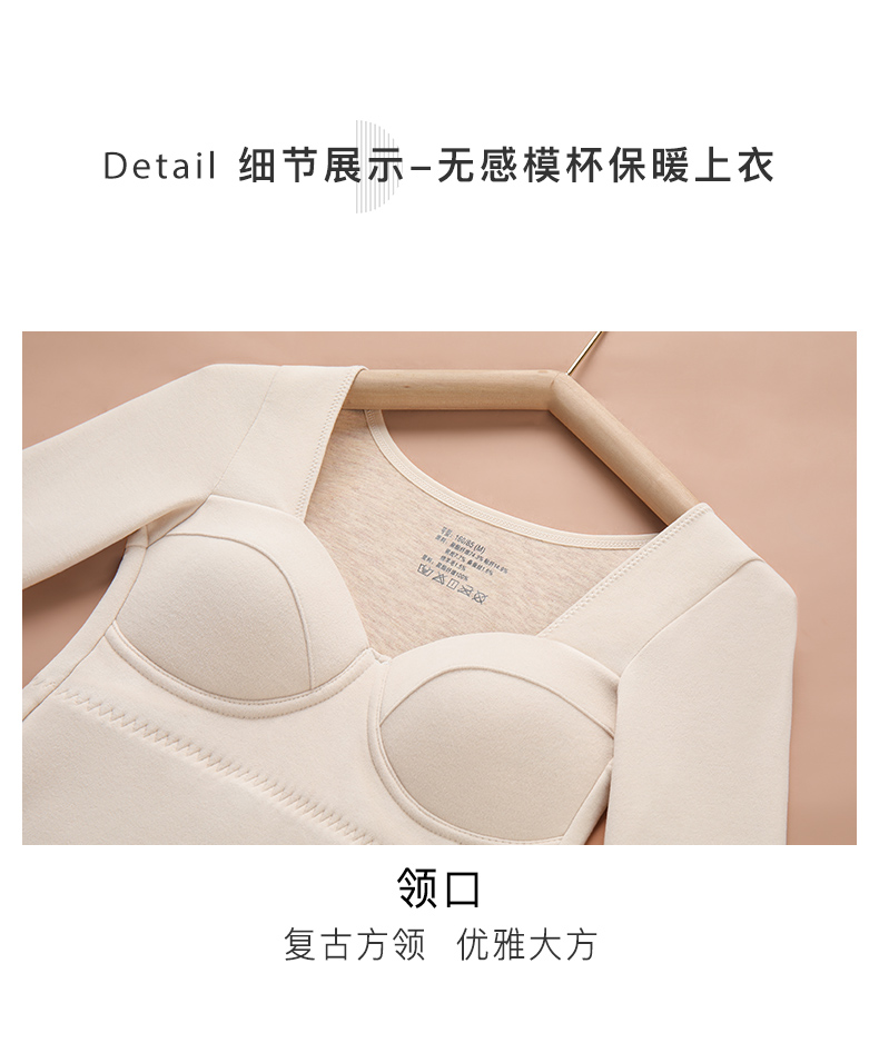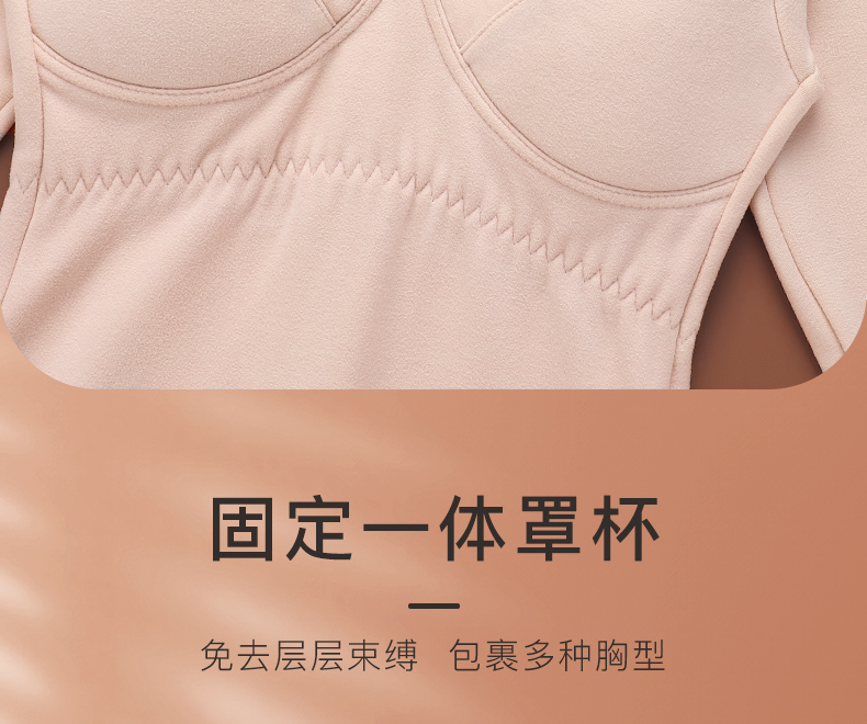 梦芭蒂保暖内衣上衣背心文胸一体式秋冬季女士带胸垫免穿加绒加厚流香溢彩保暖上衣