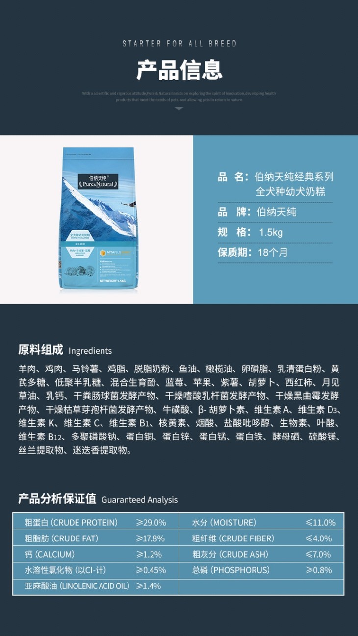 伯纳天纯全品种幼犬奶糕10kg
