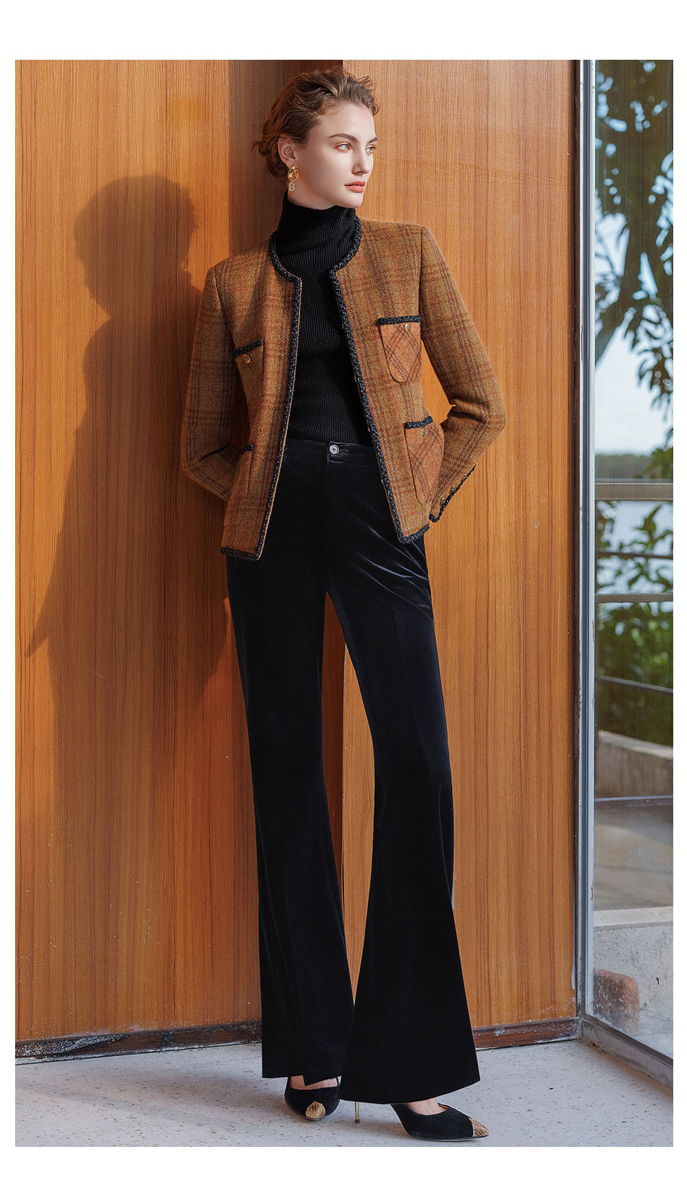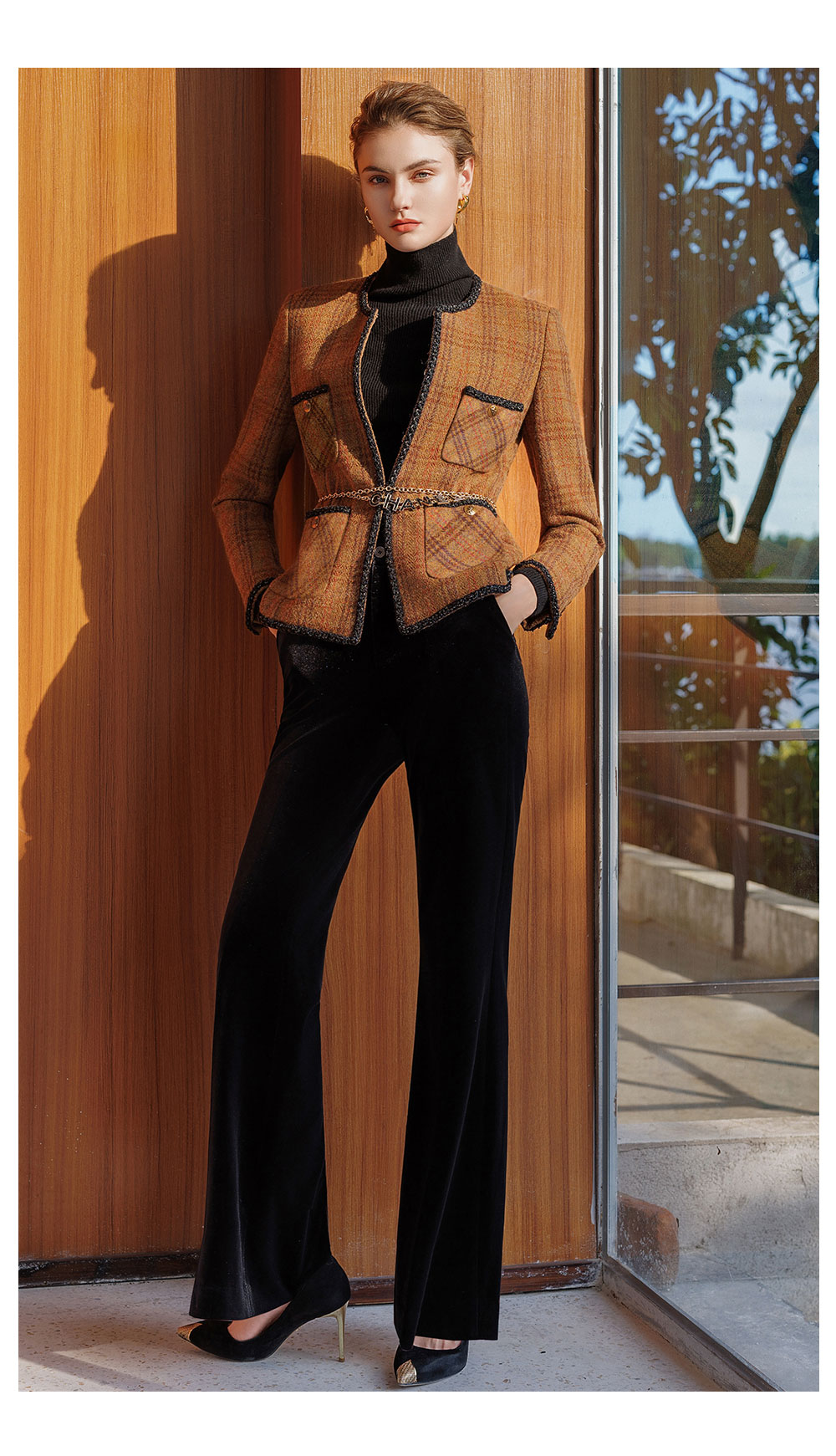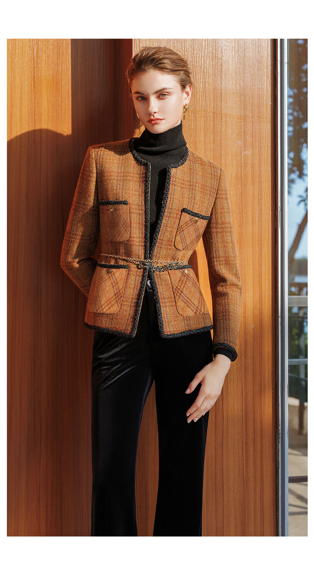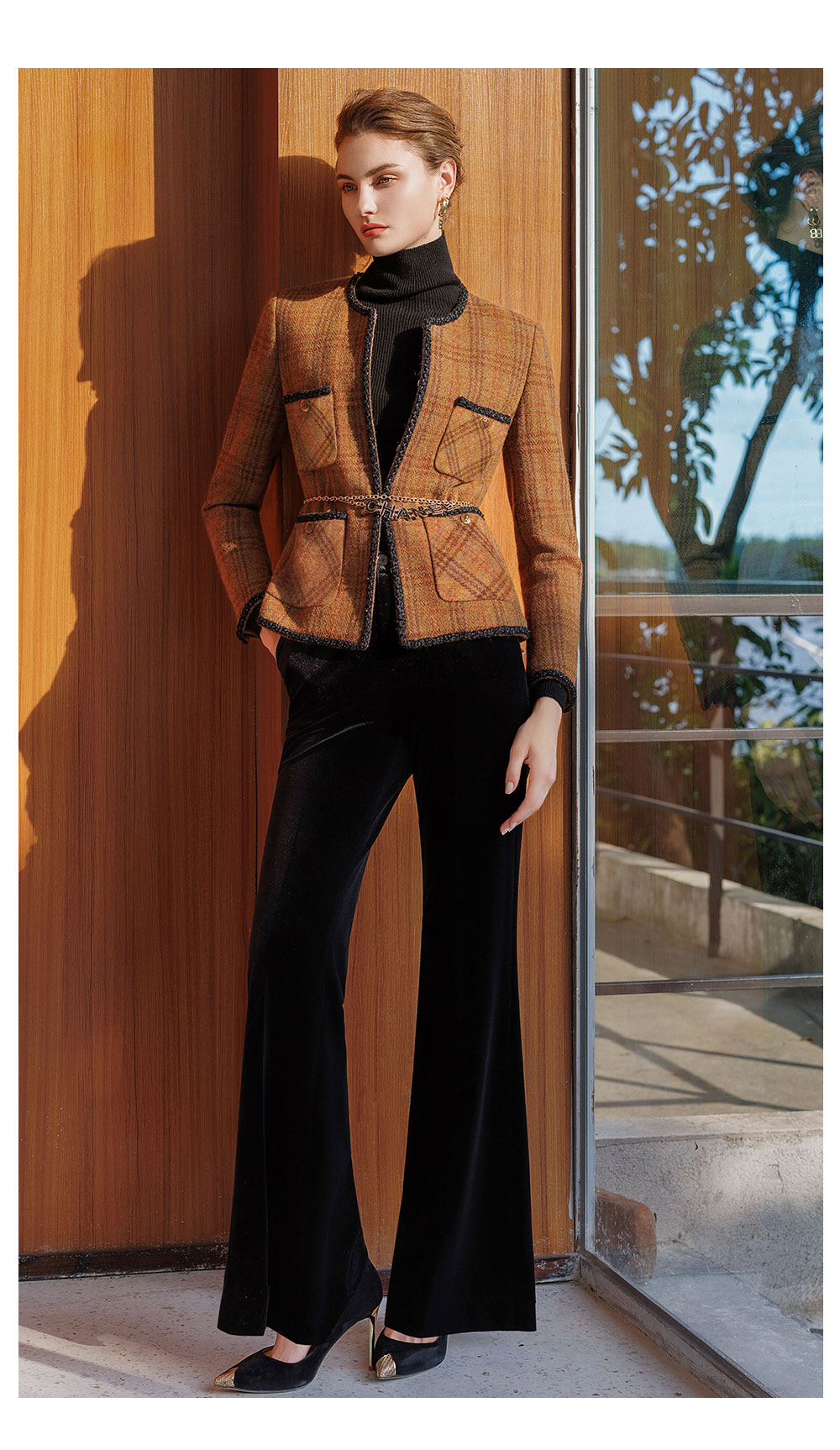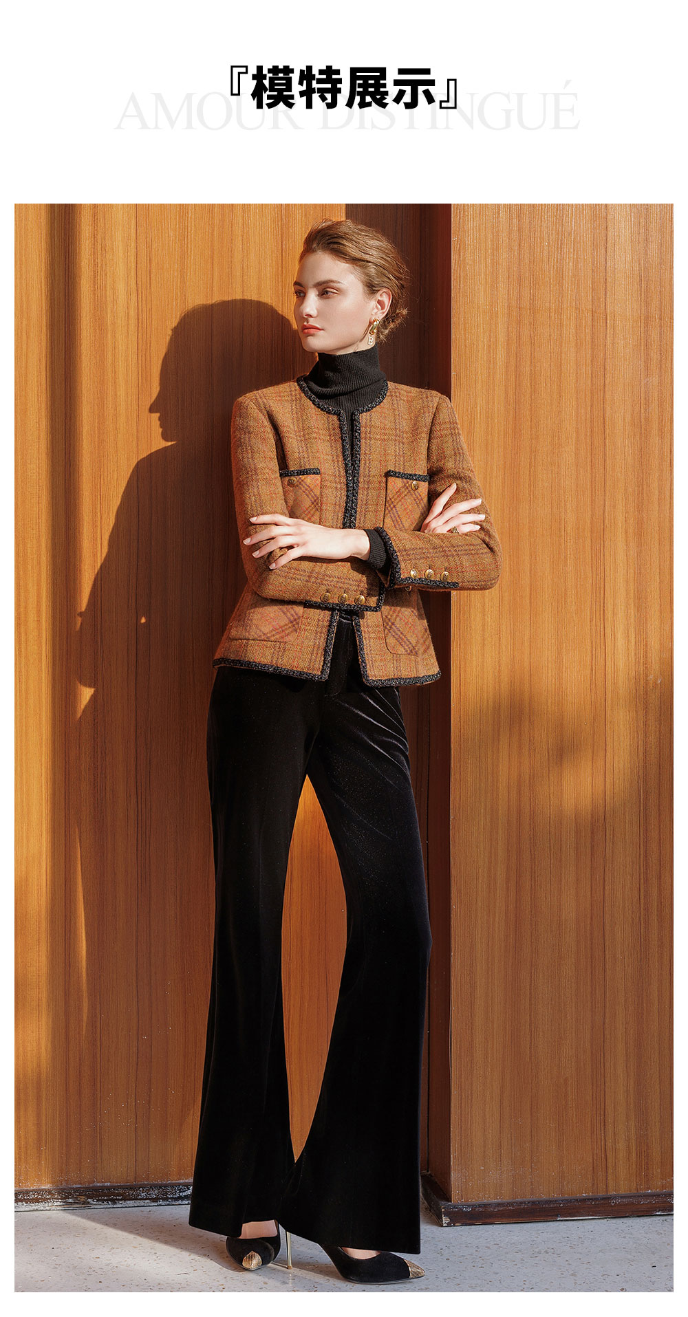 AD新中式加厚羊毛小香风外套女秋冬新款2025时尚套装一整套穿搭