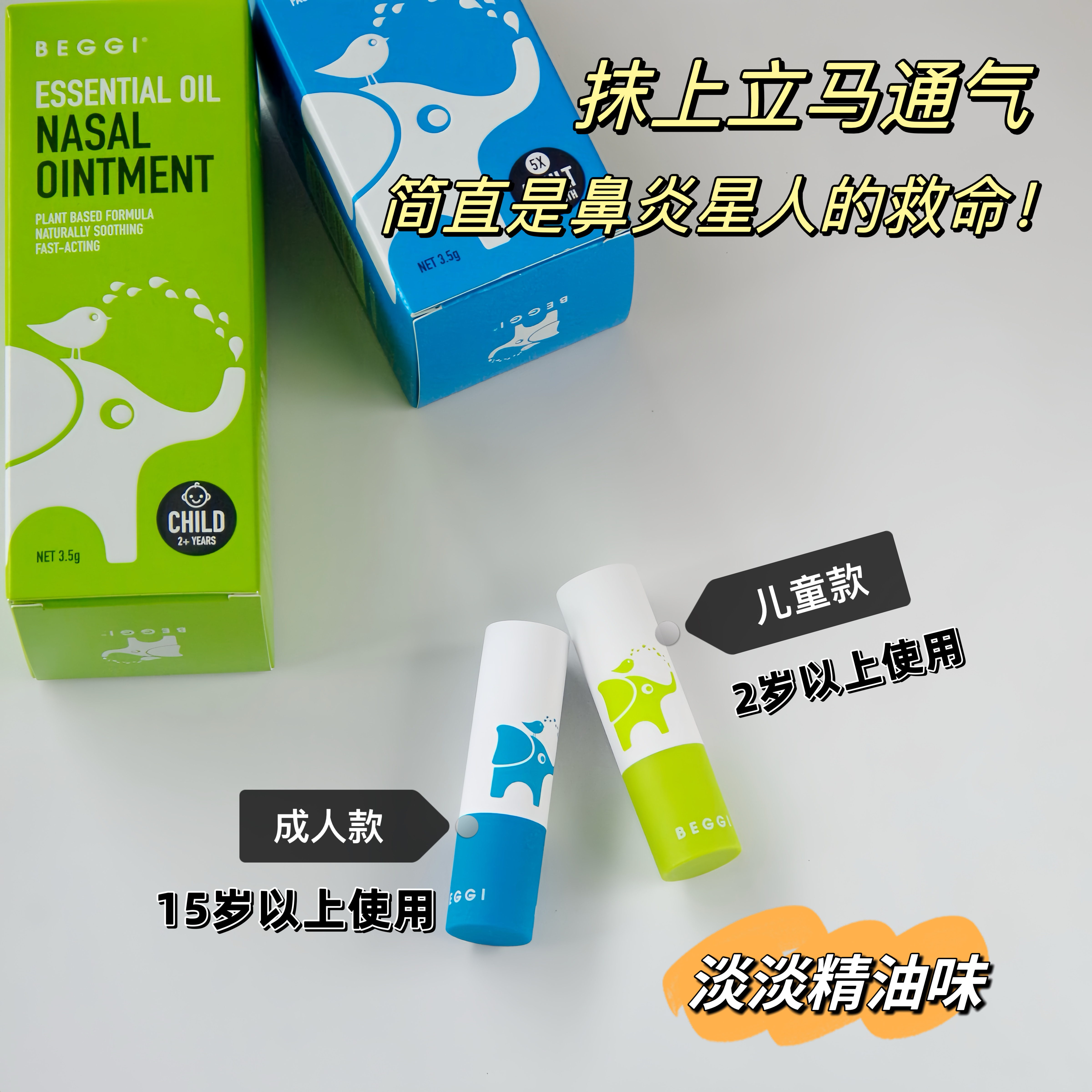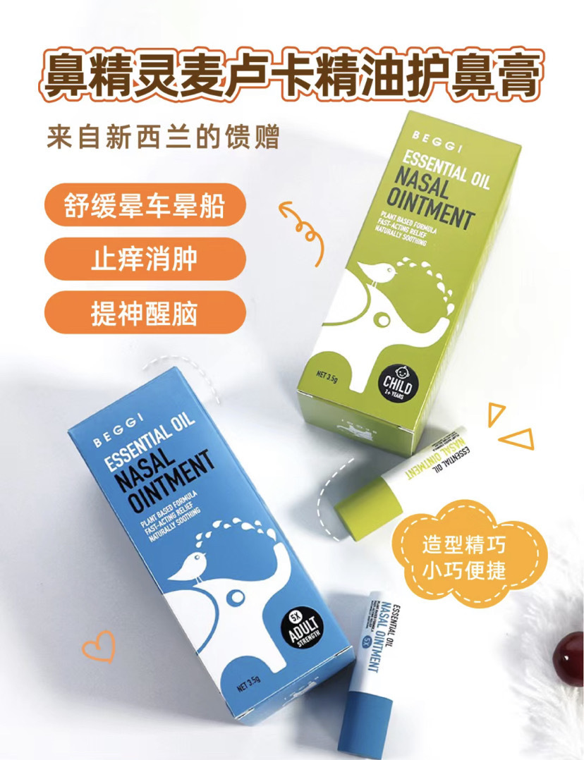 换季复发【新西兰 BEGGI鼻精灵通鼻膏】缓解多种鼻炎问题:鼻塞、鼻痒、流鼻涕、打喷嚏、花粉过敏、灰尘污染,过敏性鼻炎&感冒引起的鼻炎都能缓解!迅速见效!!