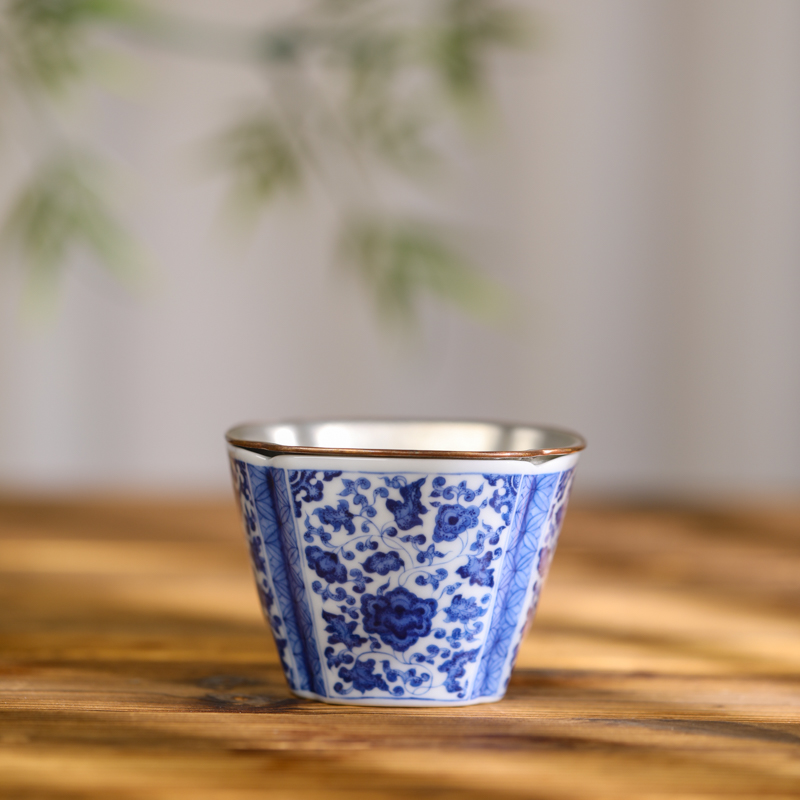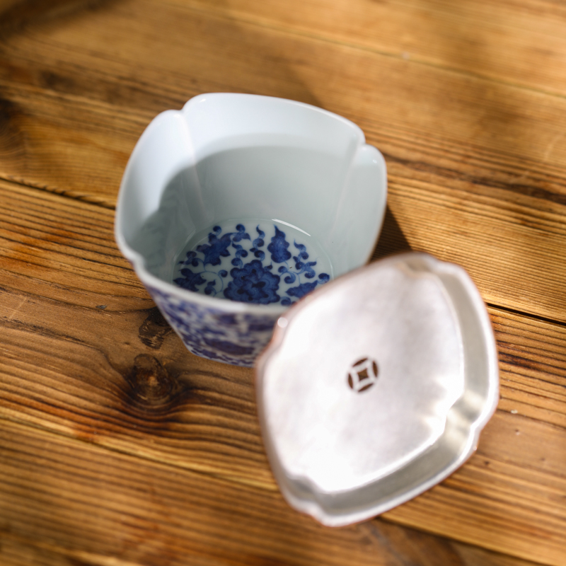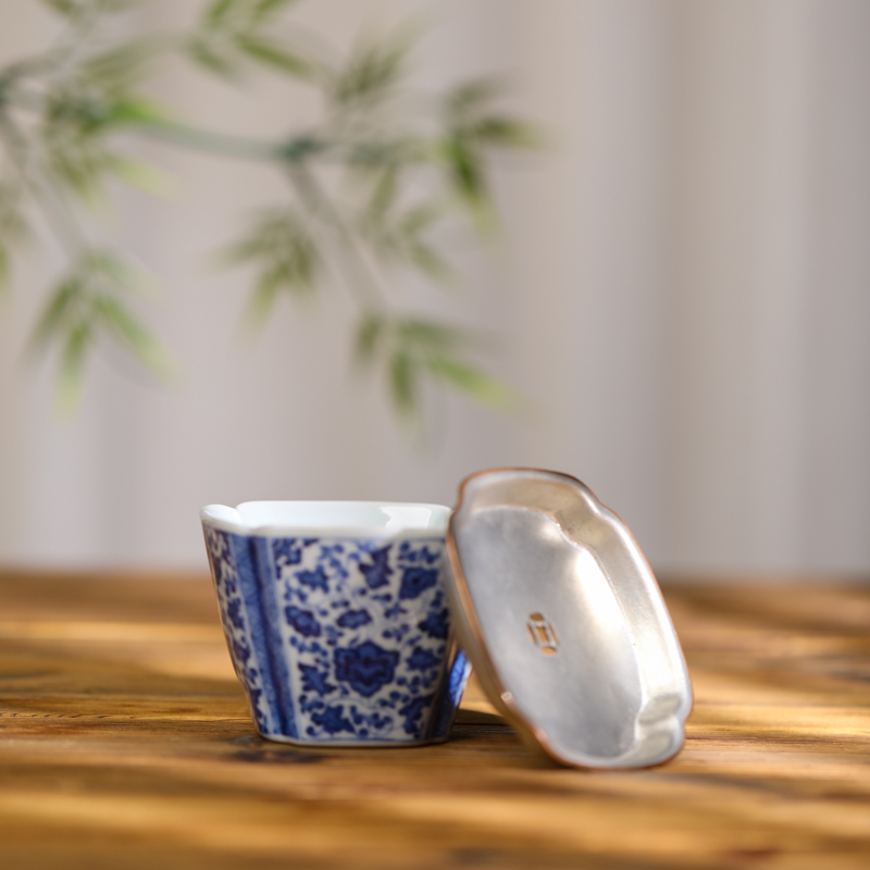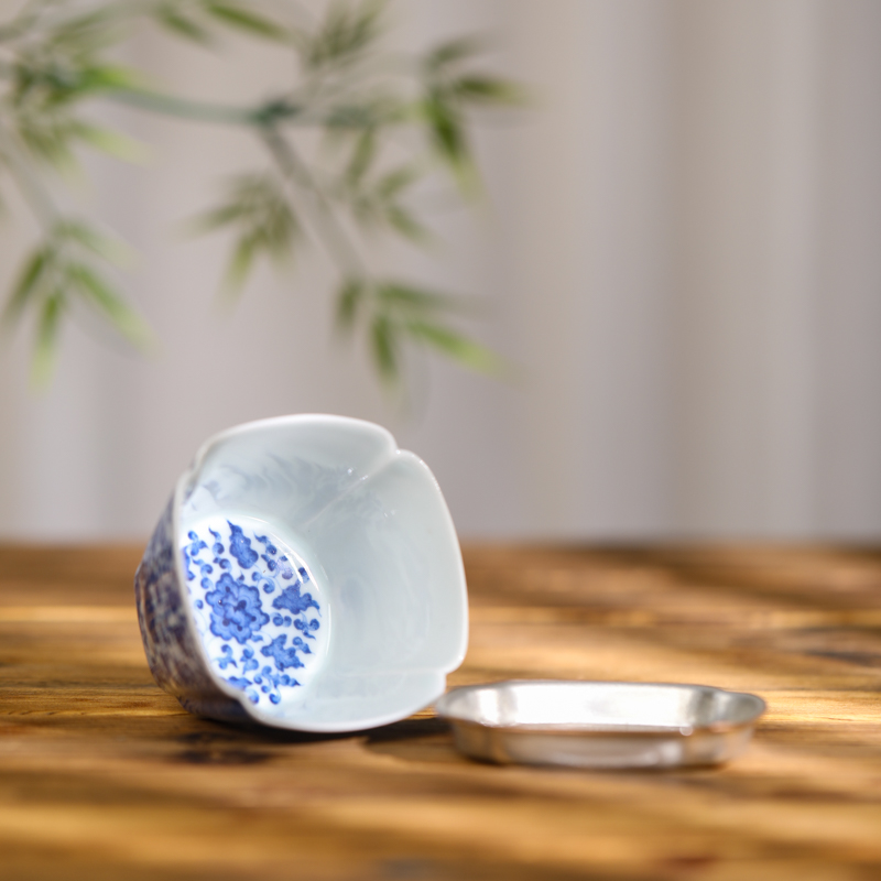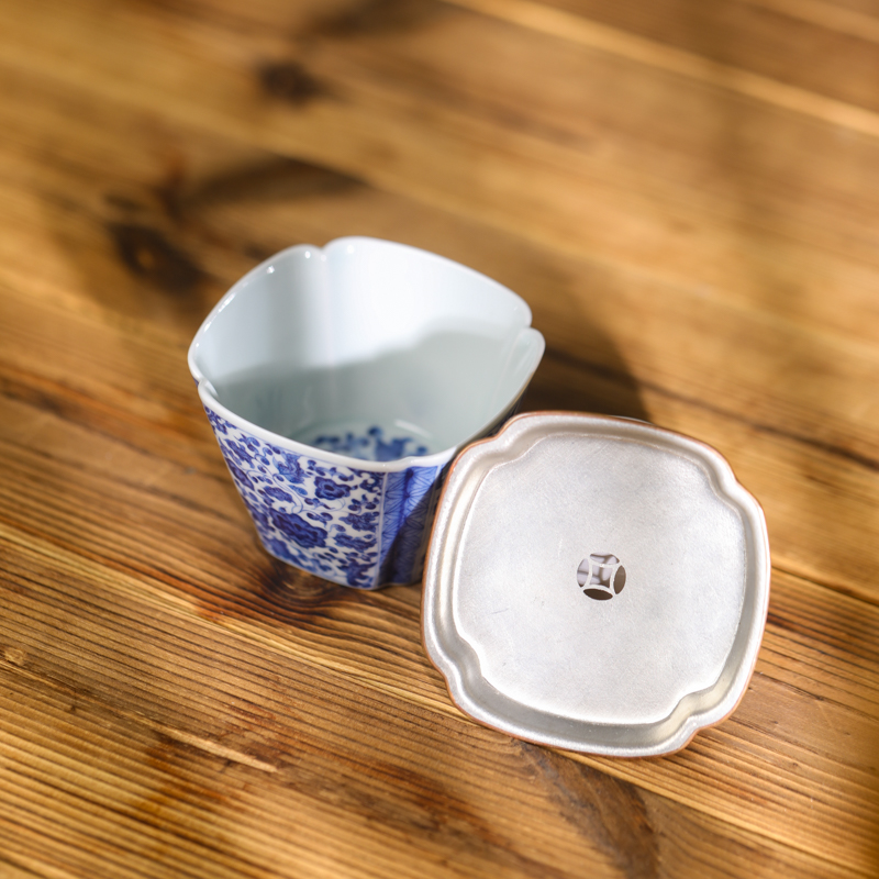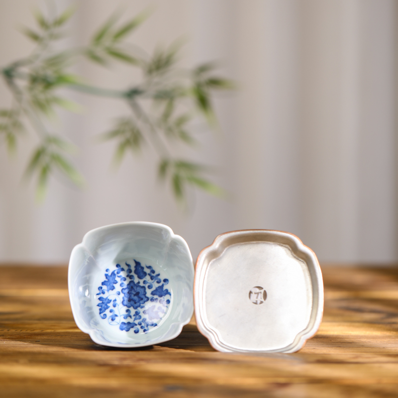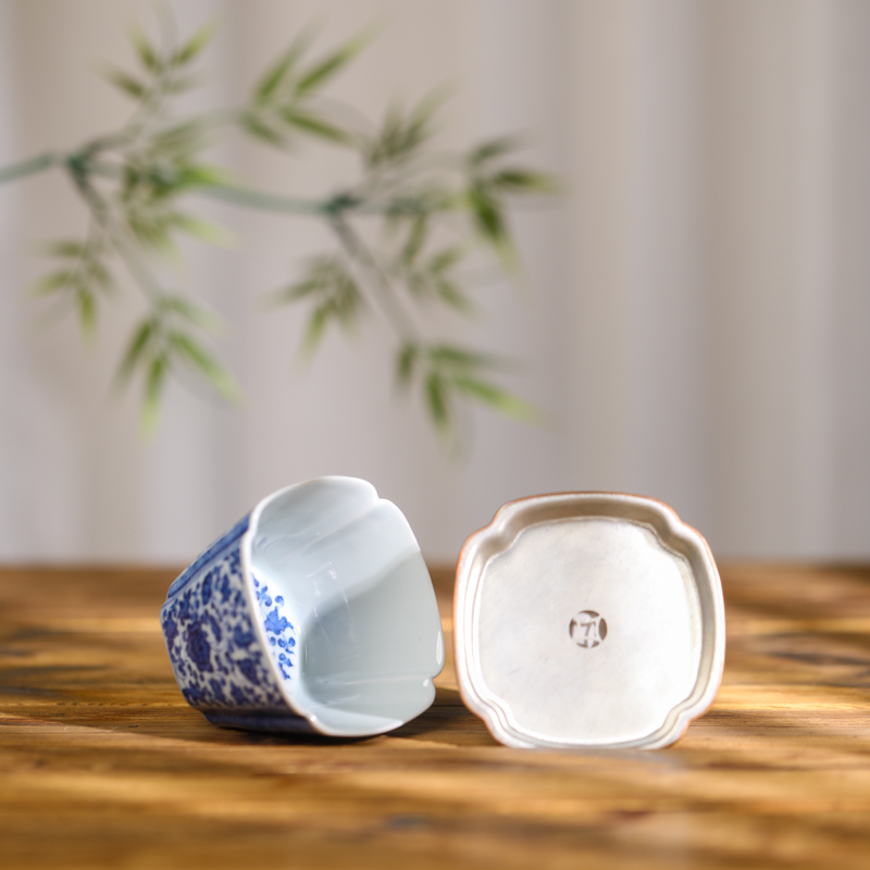【忘言】 青花点工缠枝四方建水 曰何文人器