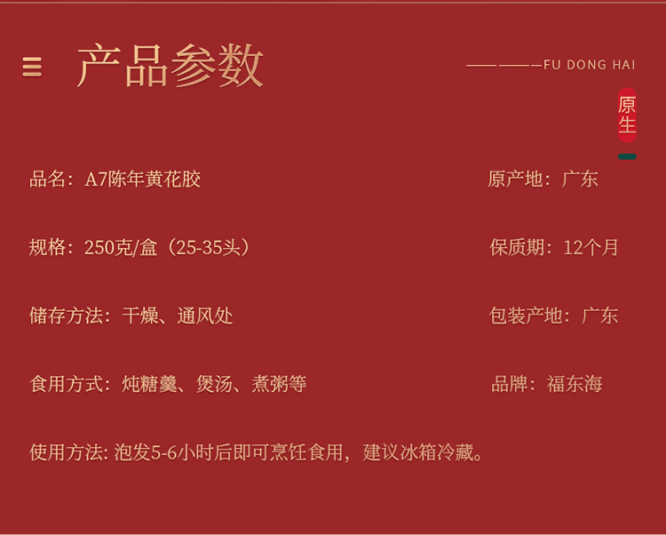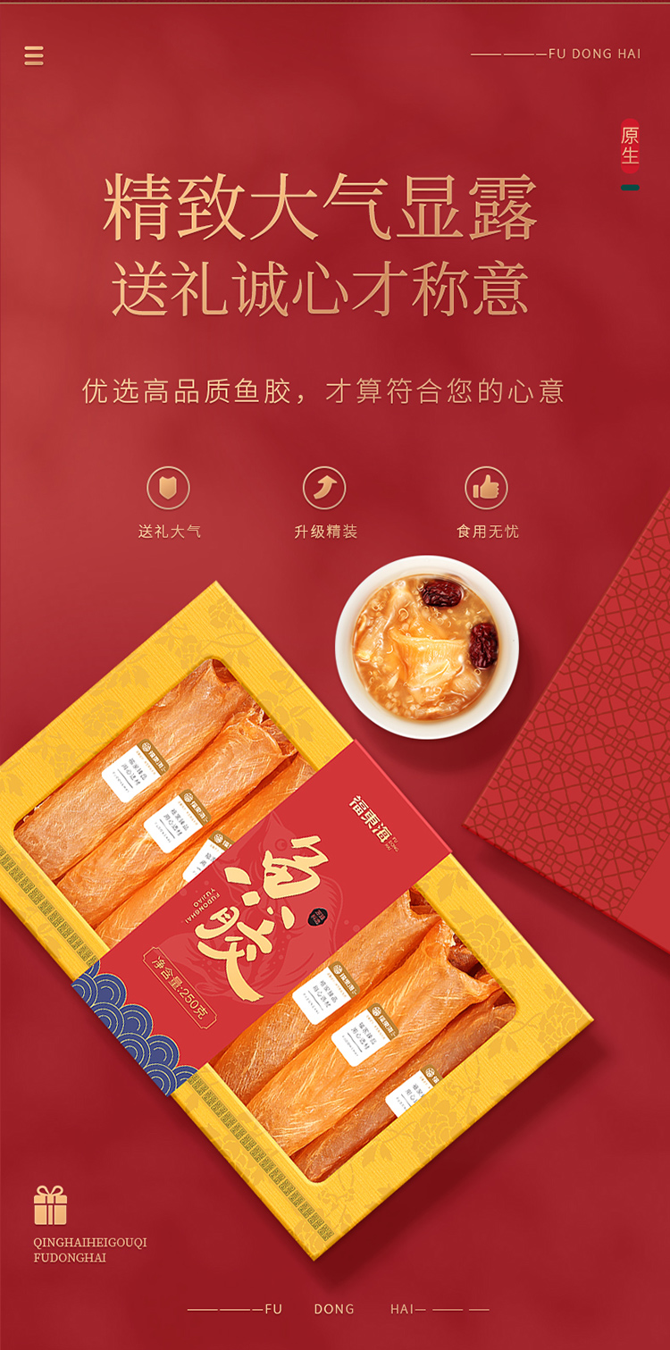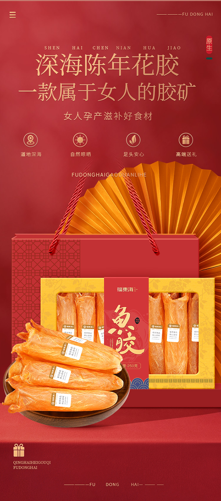福东海 A7黄花鱼胶250克 深海鱼胶花胶 鱼肚鱼鳔干筒煲汤 月子孕妇女人滋补品 送礼佳品