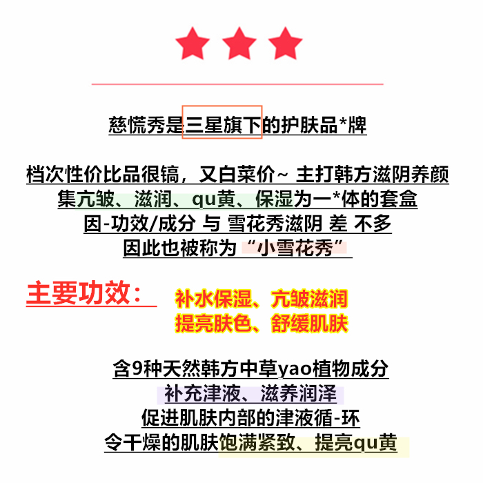 【滋阴养颜抗皱】三星慈慌秀水乳霜三件套 平价版雪花秀 超值大礼盒