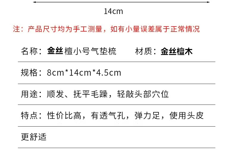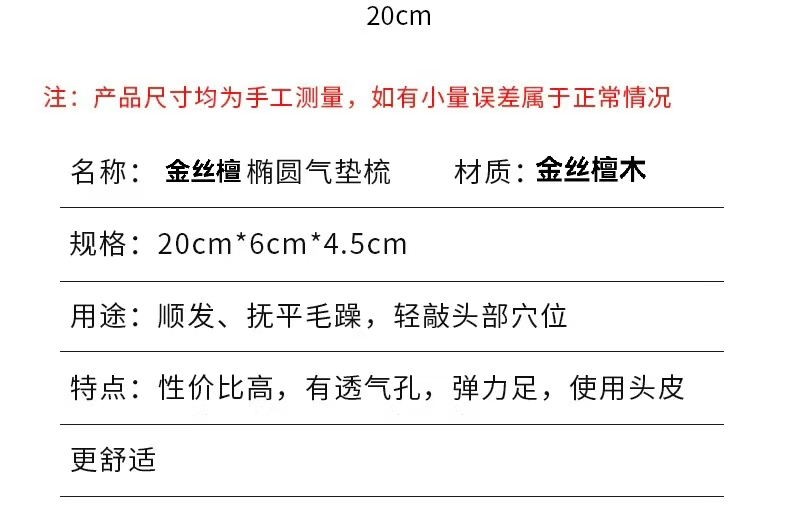 【三个款式可选】唯雅檀木气垫按摩梳 弹力气囊有透气孔头皮更舒适 甄选檀木纹理自然厚实不易断
