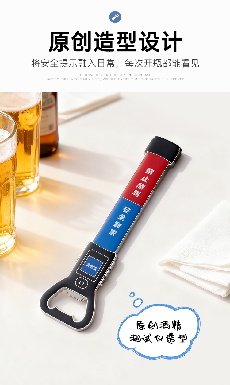 【酒精测试仪开瓶器冰箱贴】创意便携啤酒开口器 家用开盖起瓶器 个性创意日用磁吸贴