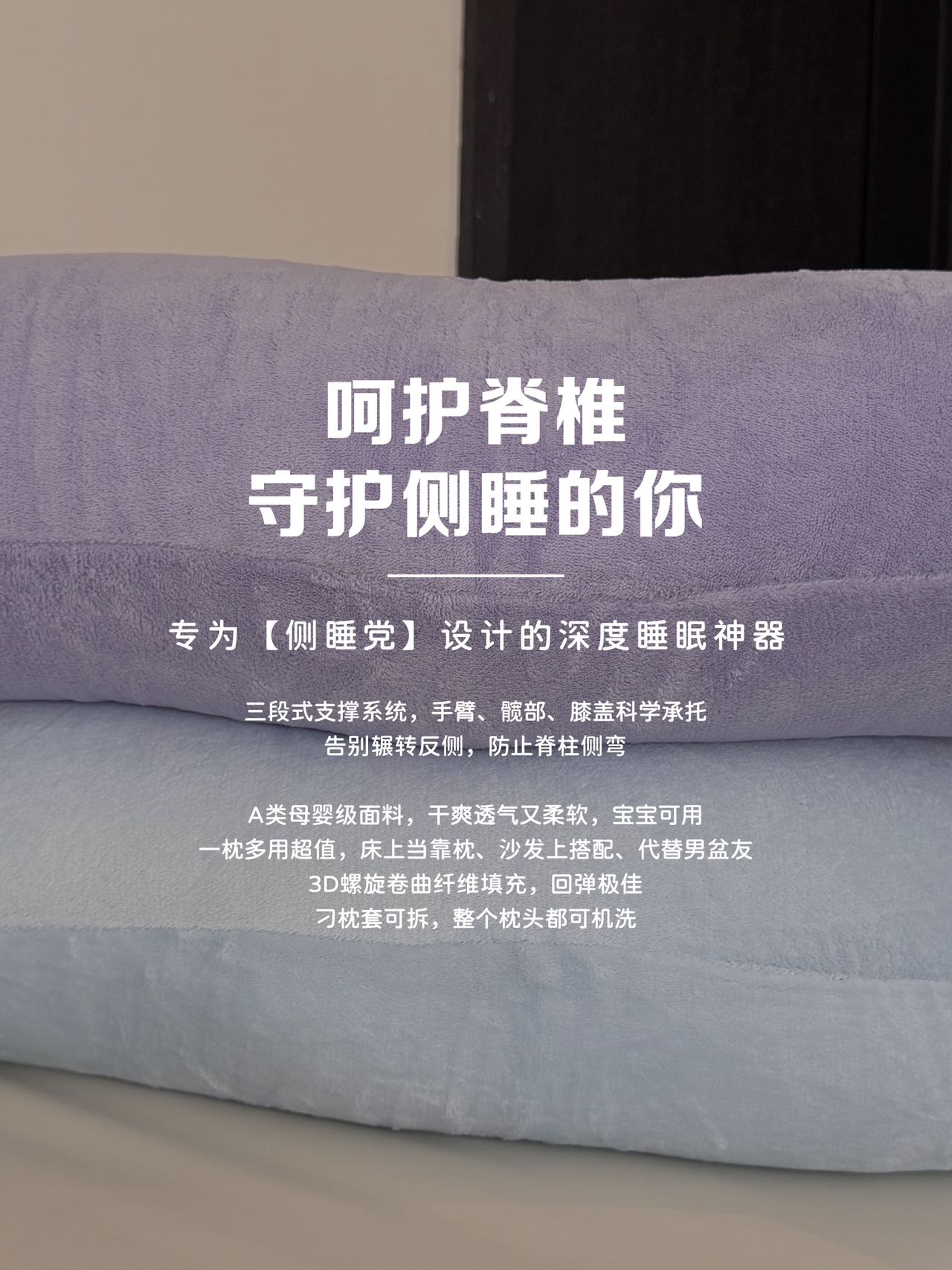 【同款深睡抱抱枕】A类母婴面料 柔软亲肤 隐藏式拉链头 呵护JI椎 三点支撑 双波浪曲线设计 为侧睡量身定制