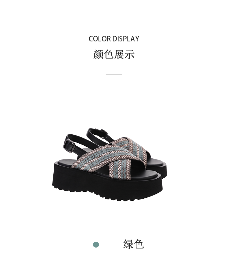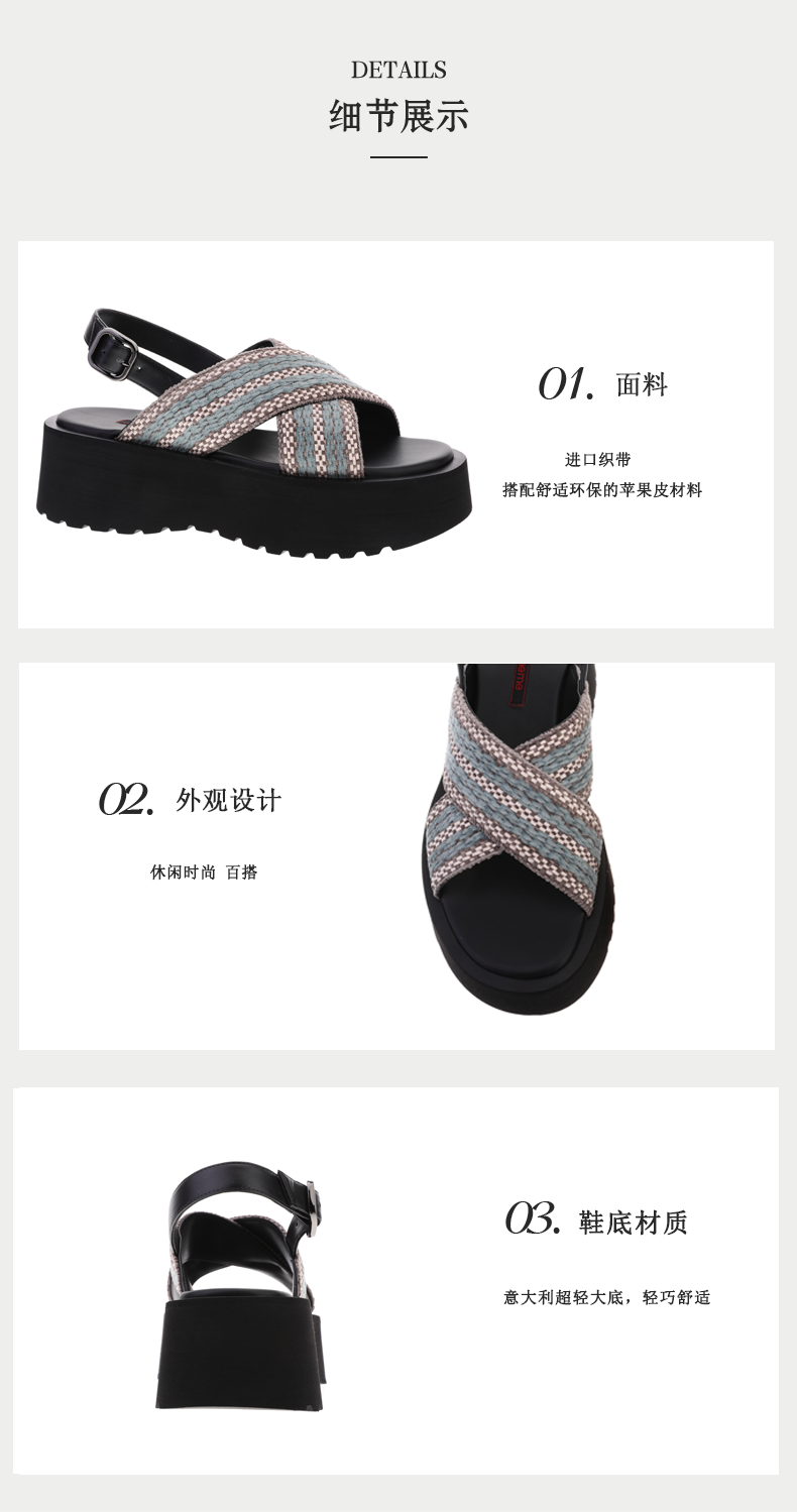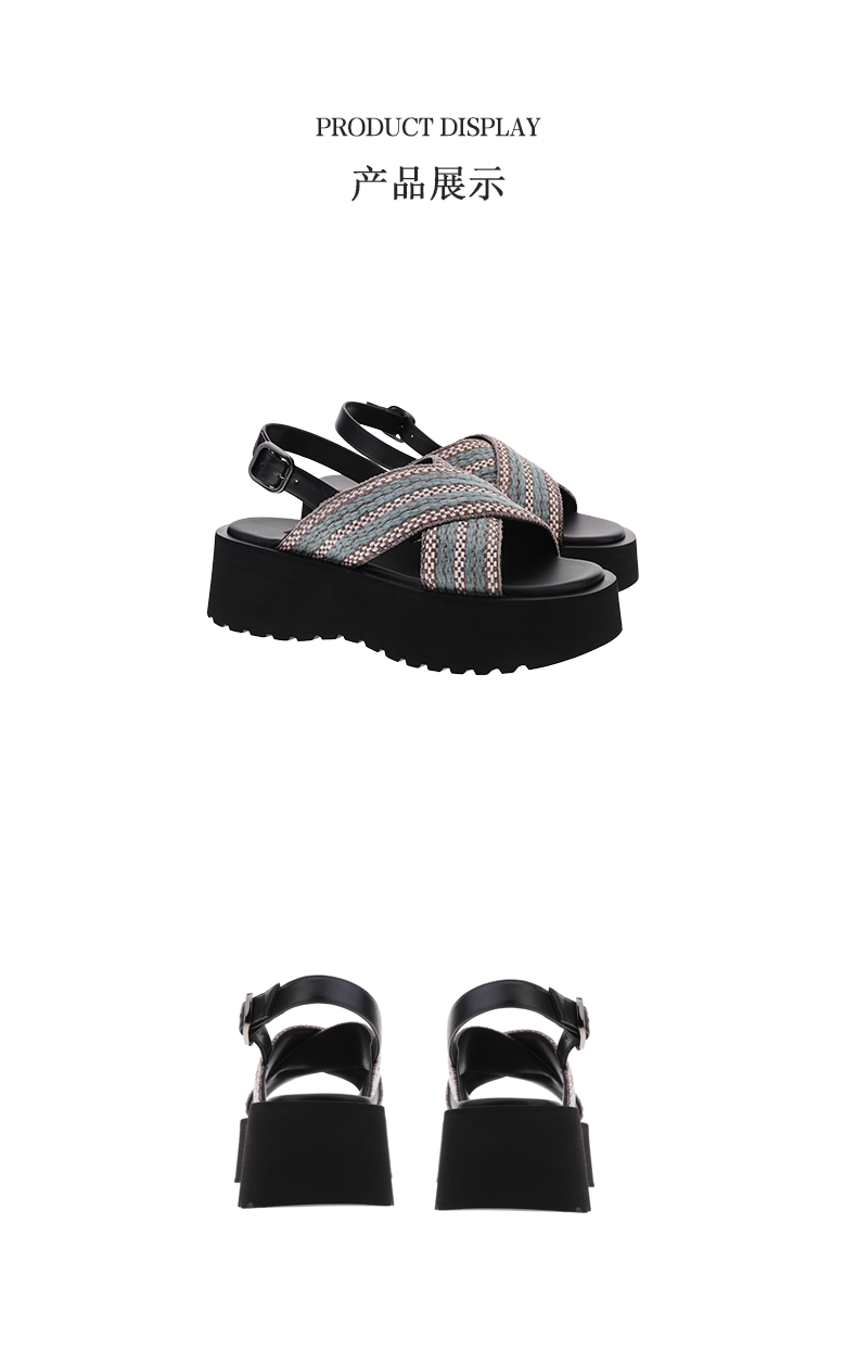 sheme进口织带搭配速干布内里休闲时尚女士厚底凉鞋可定制