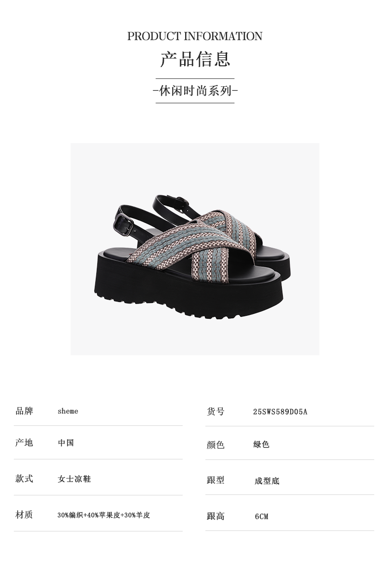 sheme进口织带拼接环保苹果皮休闲时尚厚底女士凉鞋可定制