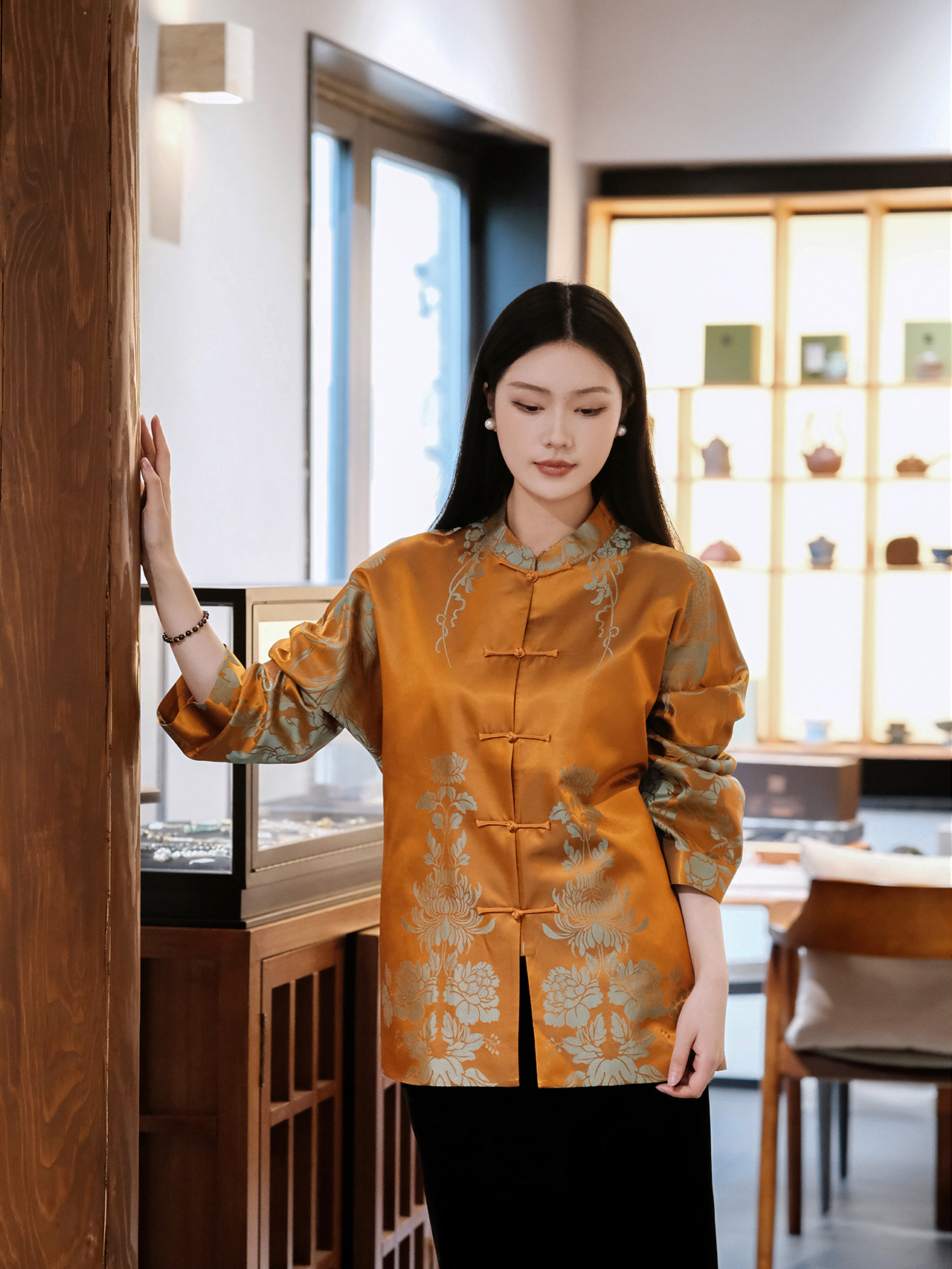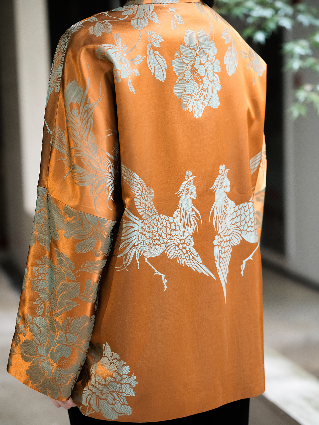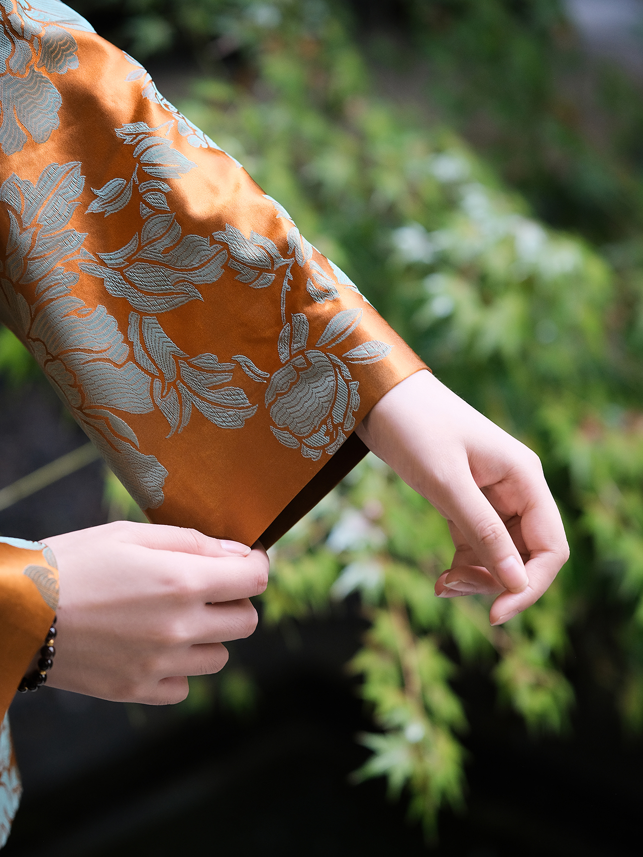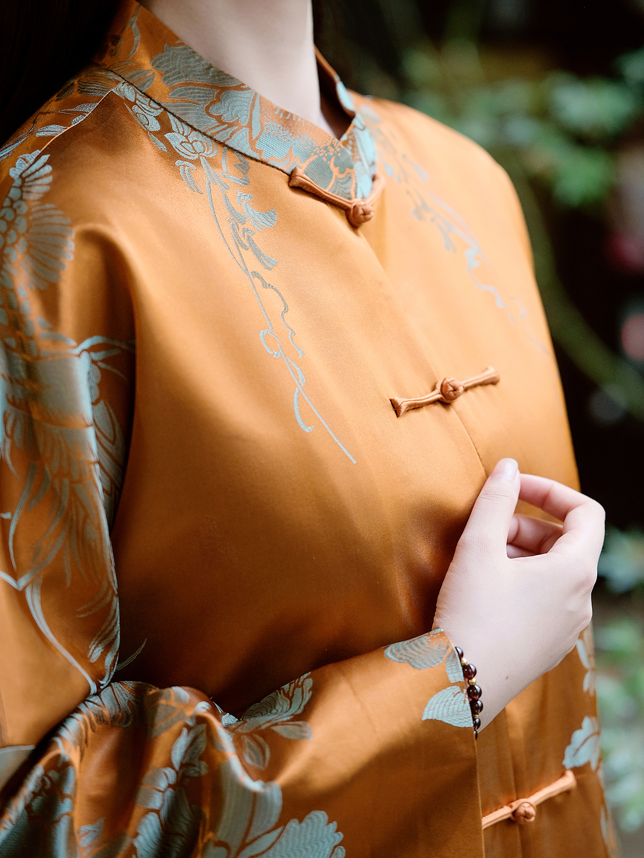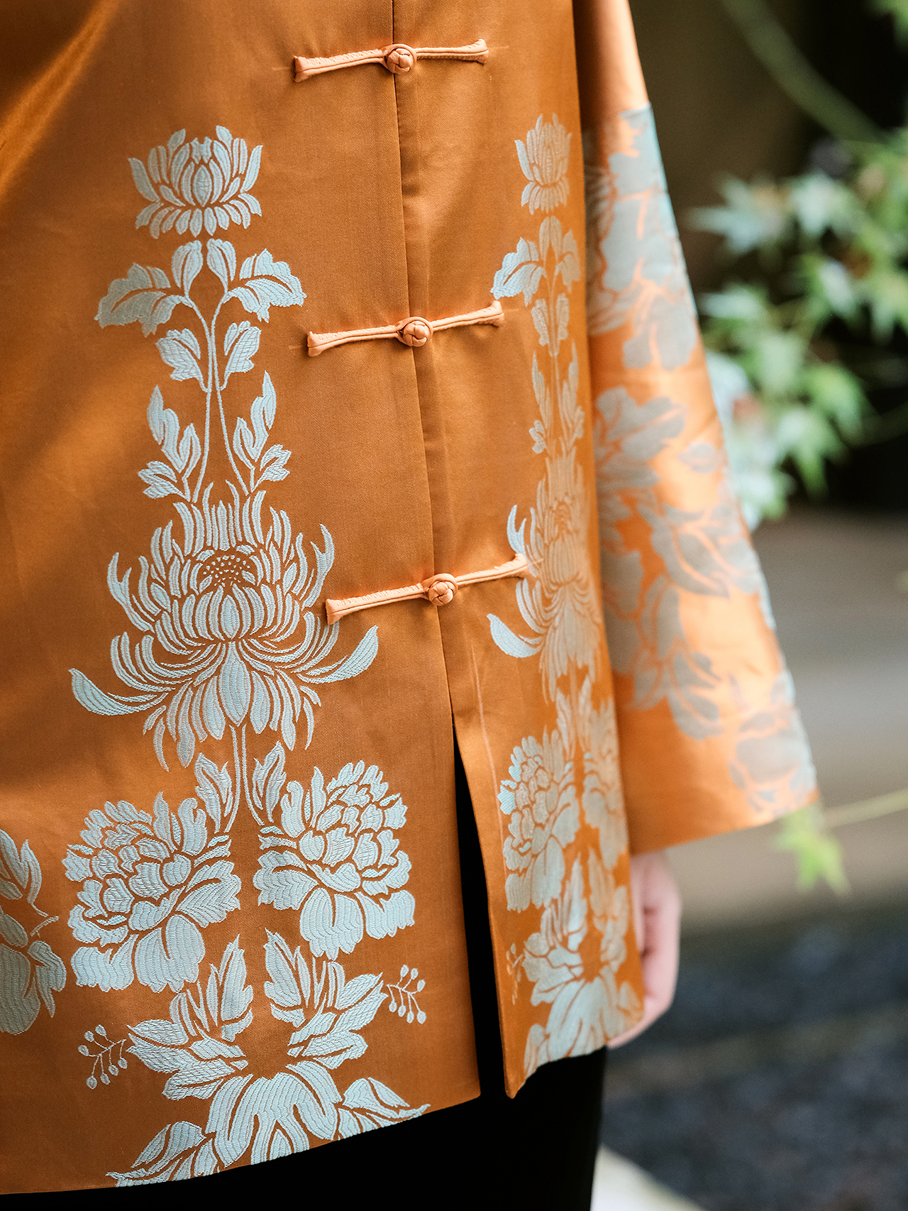 盛唐婧 | 轻奢新中式老缎提花对花对襟外套-秋橙色