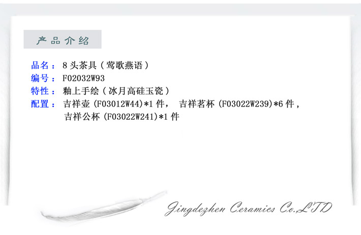 景德镇陶瓷 国瓷红叶 8头茶具(莺歌燕语)