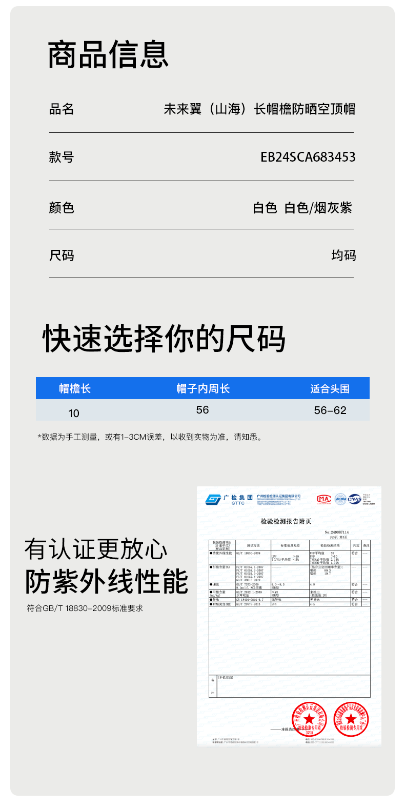 引擎鸟未来翼山海长帽檐防晒空顶帽 男女同款