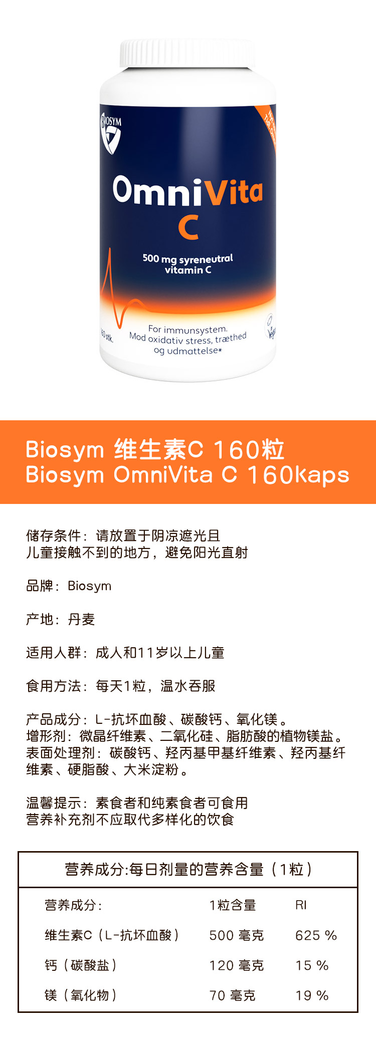 [保税区-FX]Biosym 维生素C 160粒.Biosym OmniVita C 160kaps.