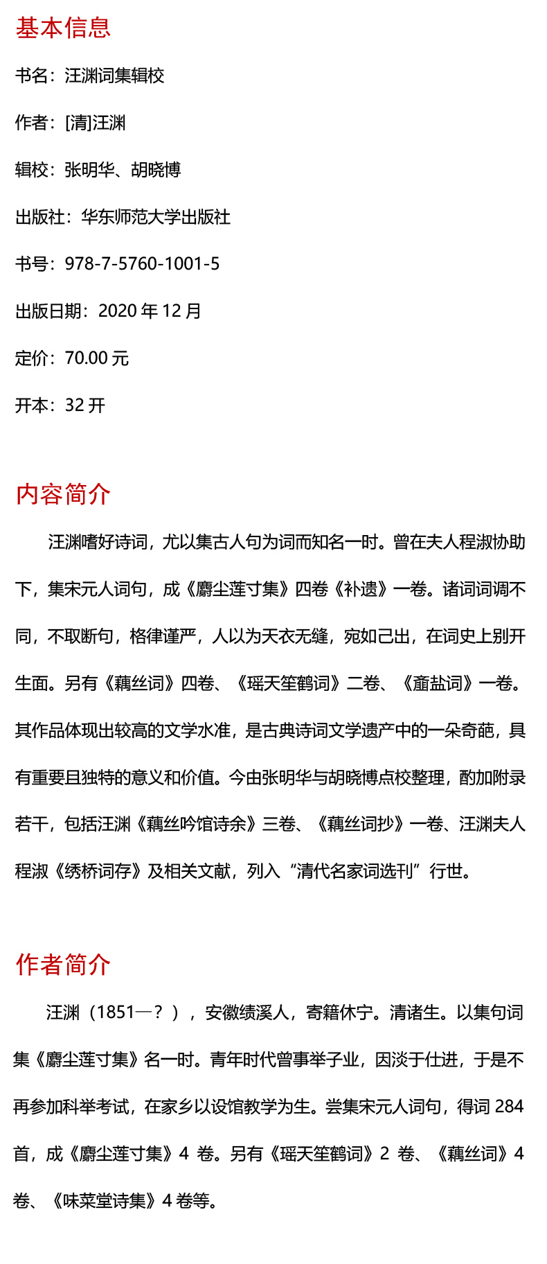 汪渊词集辑校 张明华 胡晓博 辑校 清代名家词选刊