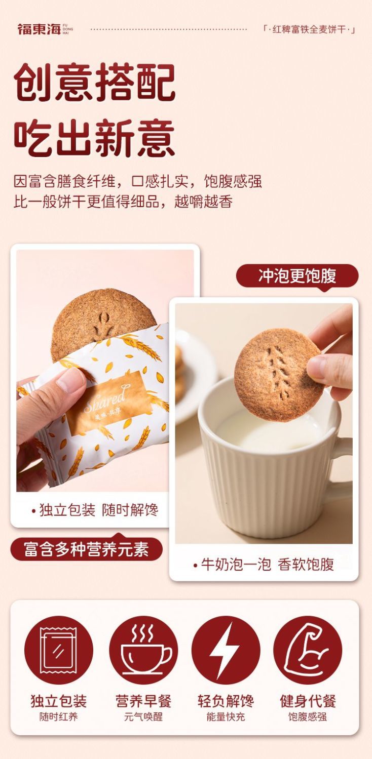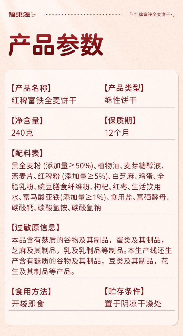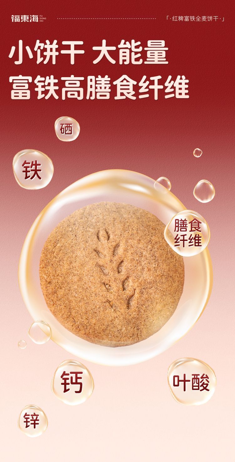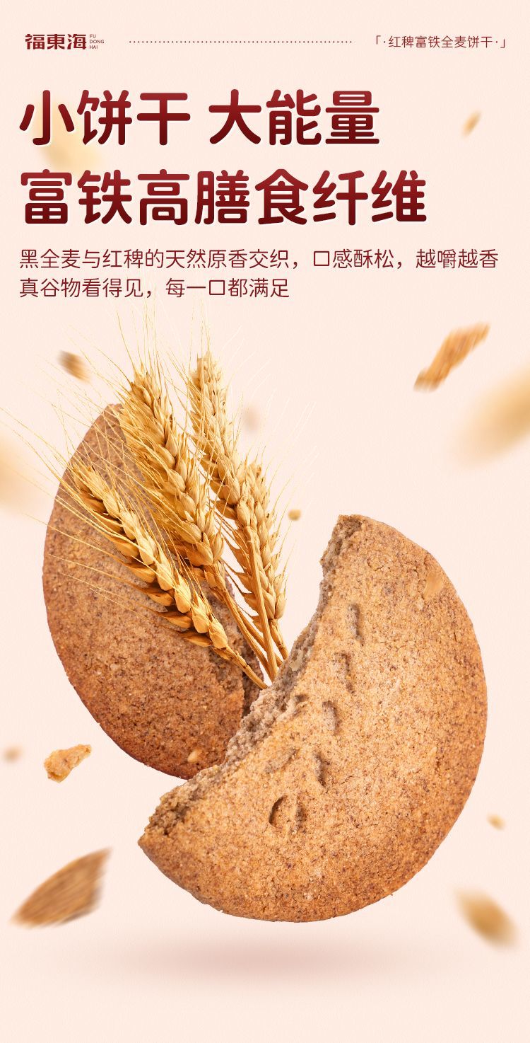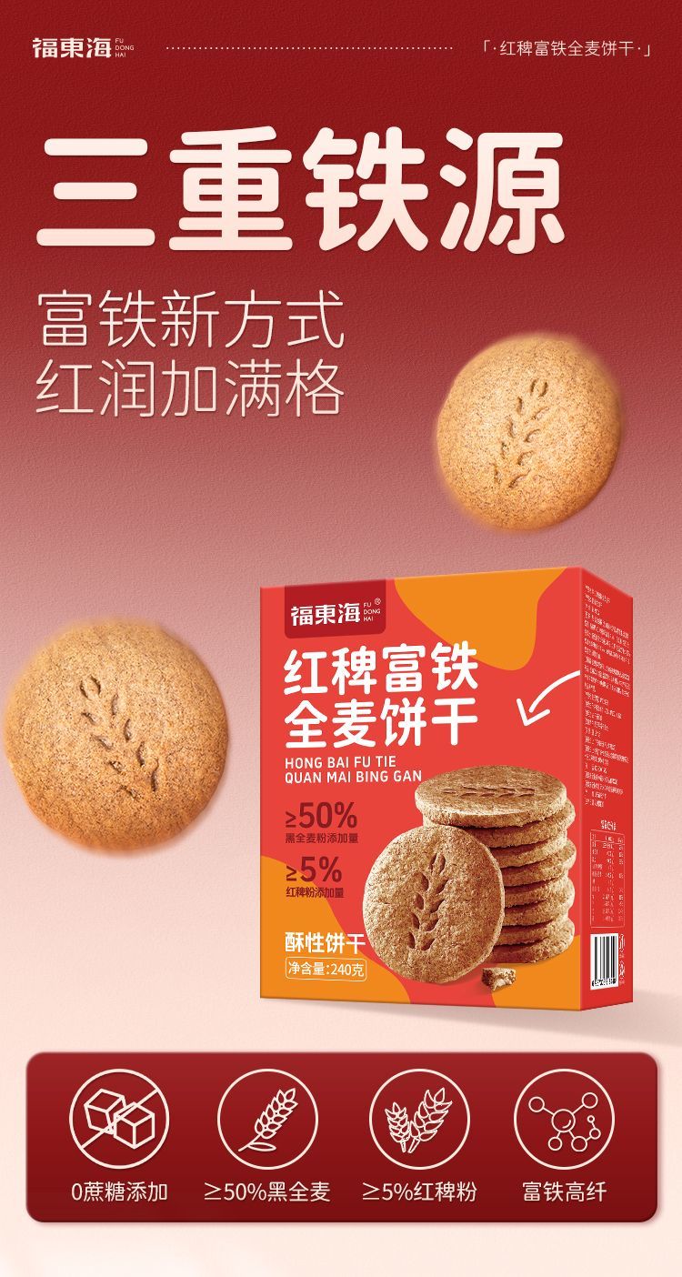 福东海 红稗富铁全麦饼干240g 红枣枸杞高钙0蔗糖粗粮谷物饱腹代餐