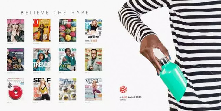 还有,它自己也轻松拿下设计界奥斯卡——德国红点大奖。几十家高端杂志抢着和它合作,媒体更评它为“全球巨酷炫的保温杯”。