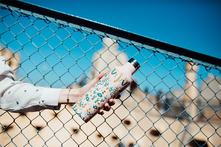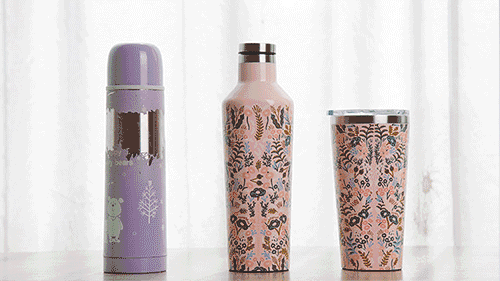 这个漂亮保温杯,是和美国知名文创品牌 Rifle Paper 联名的,织锦粉、骑士黑、花沁绿。三种印花,好看到令人尖叫。