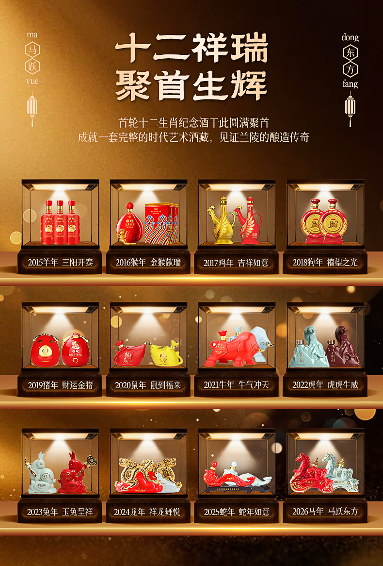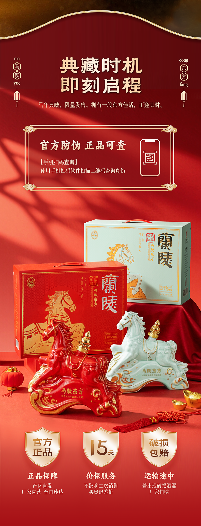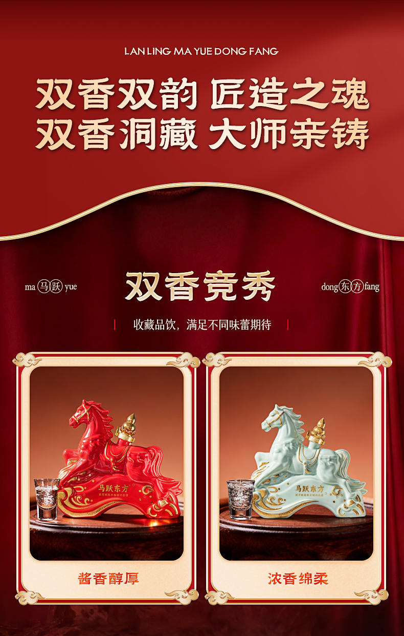 兰陵 2026马年生肖纪念酒「马跃东方」52度750mL浓香型白酒+53度750mL酱香型白酒 双瓶礼盒装