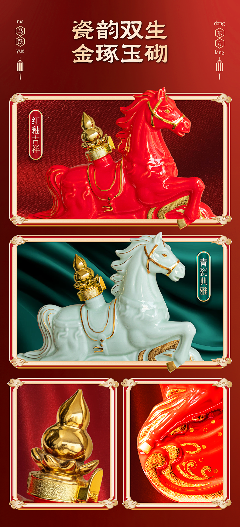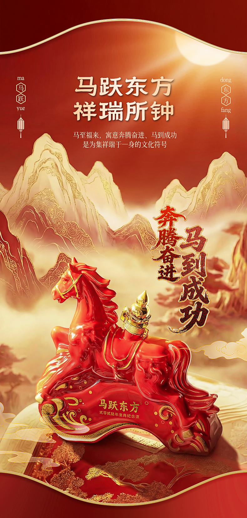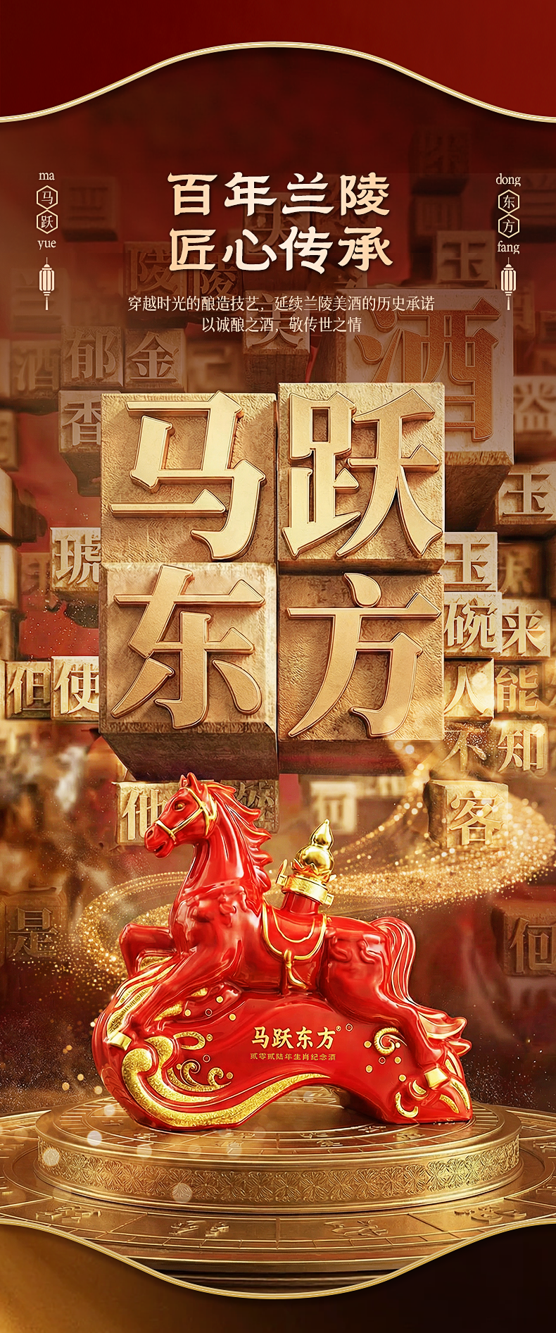 兰陵 2026马年生肖纪念酒「马跃东方」52度750mL浓香型白酒+53度750mL酱香型白酒 双瓶礼盒装