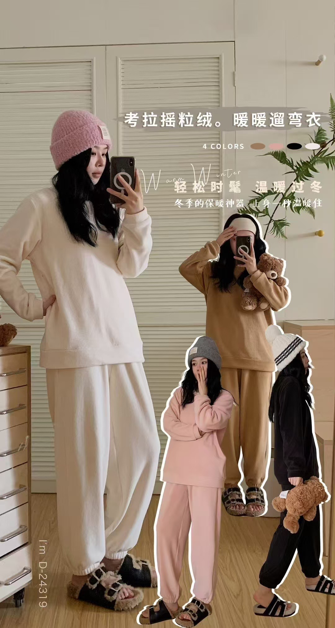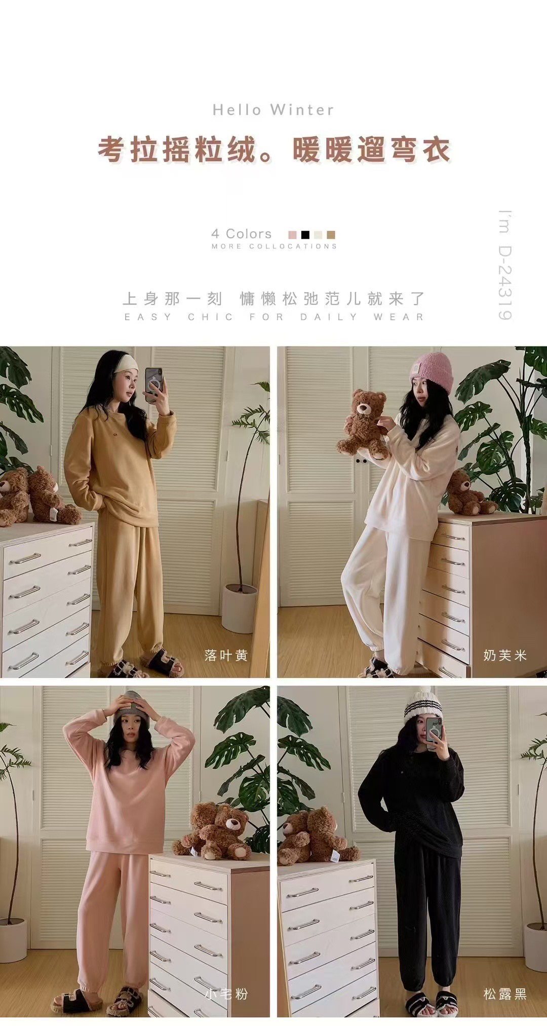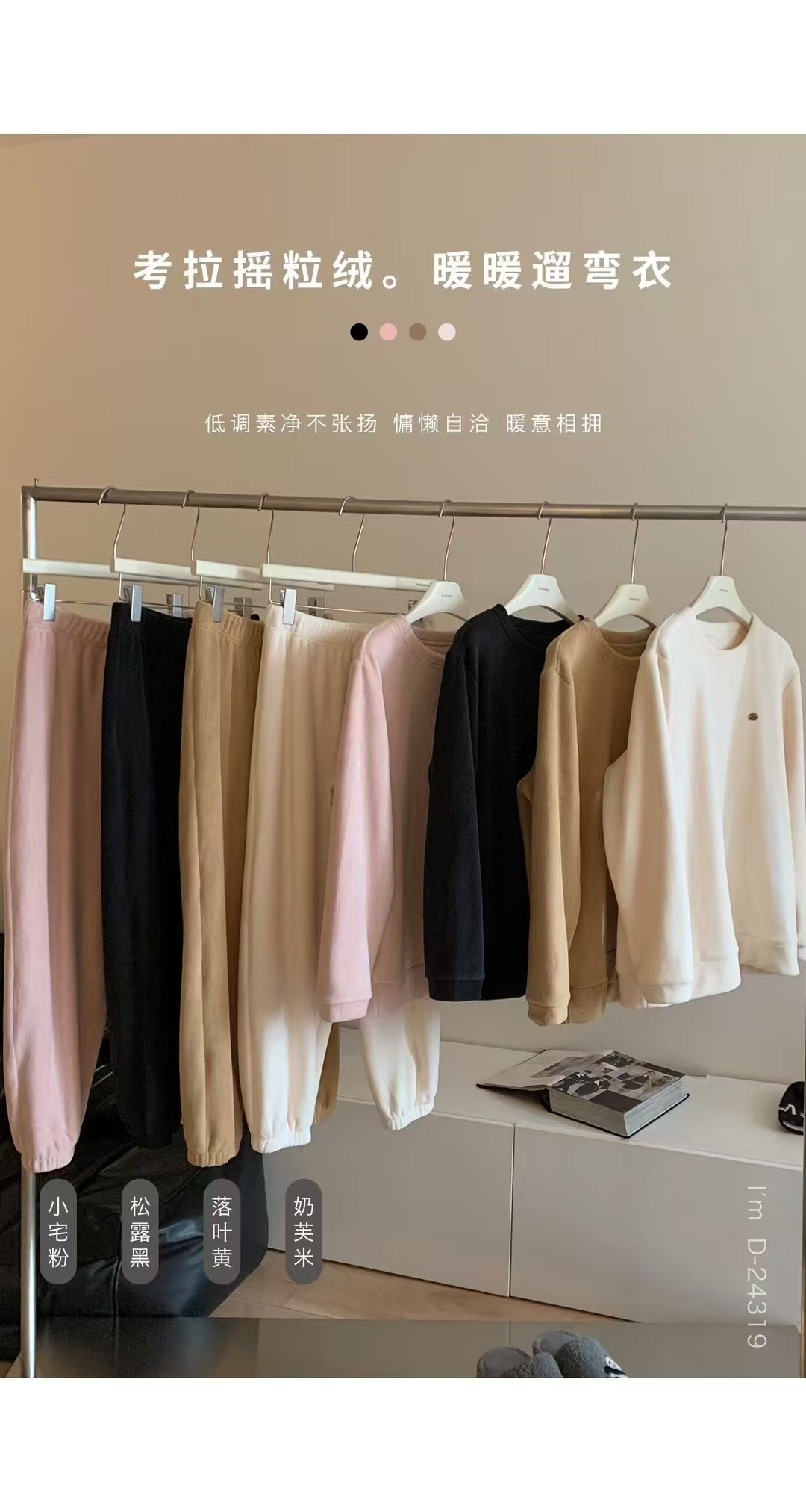 【慵懒自洽 暖意相拥】秋冬加密400g双面绒考拉摇粒绒家居服套装 休闲简约长袖睡衣两件套 轻盈温暖无负重